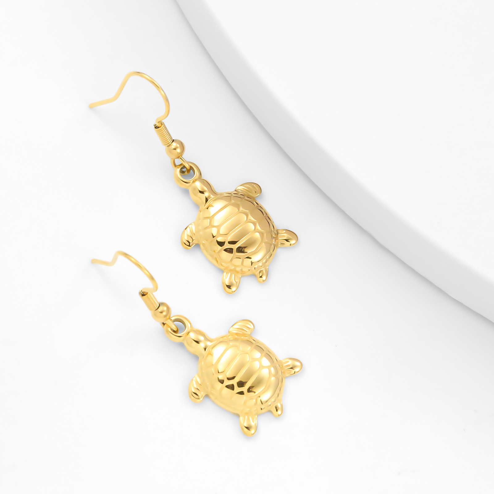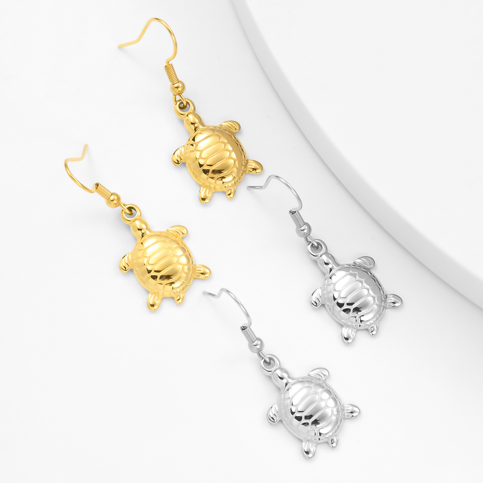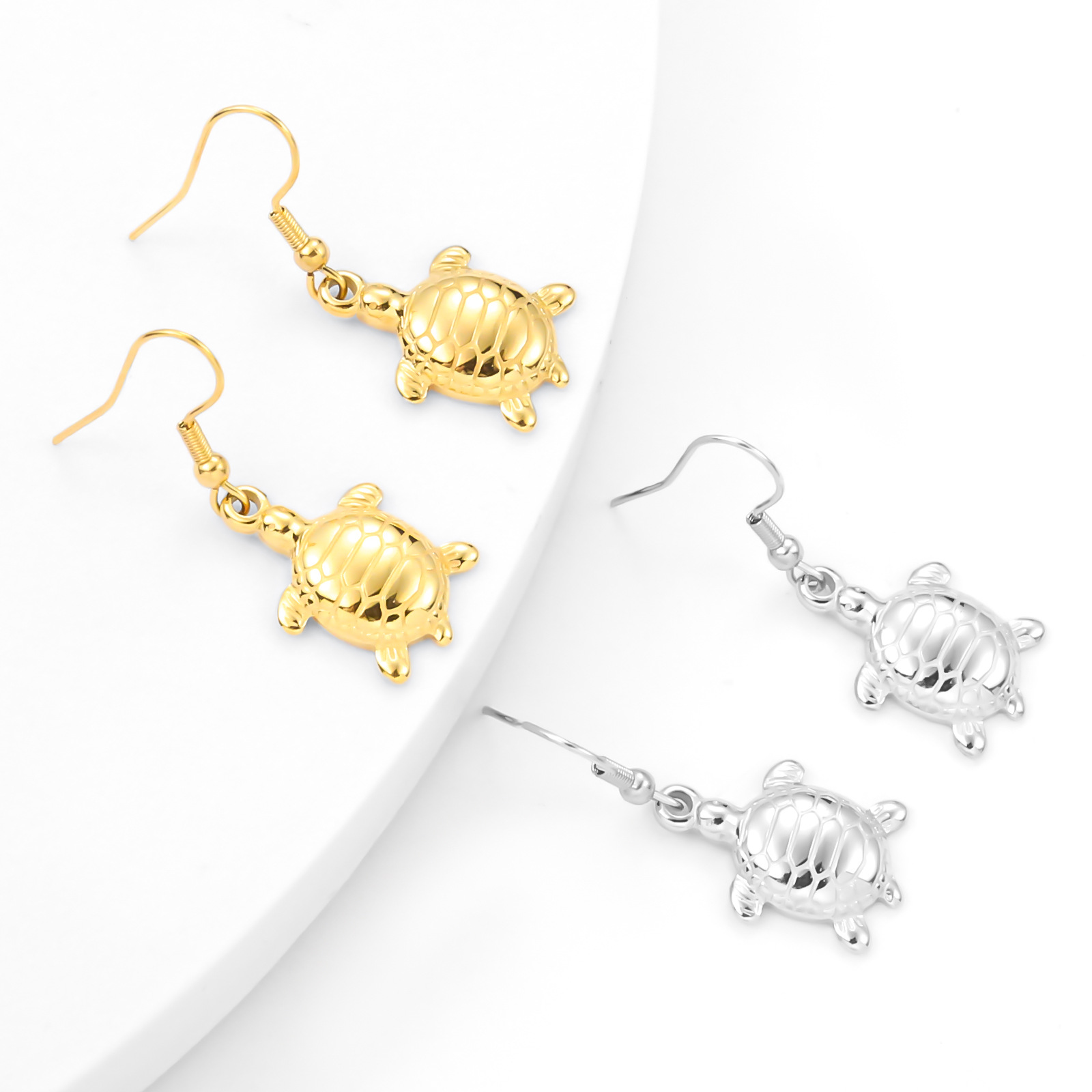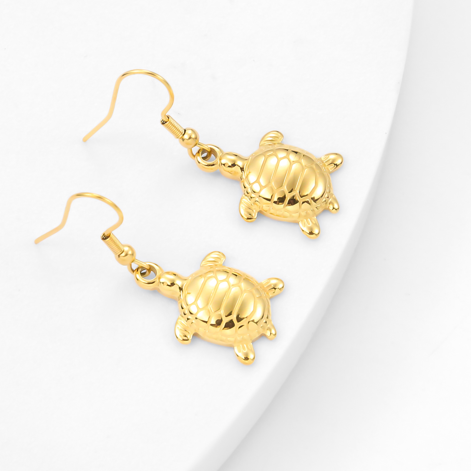 产品名称:跨境风个性甜酷不锈钢小海龟吊坠耳环 钛钢镀金高品质小乌龟配件