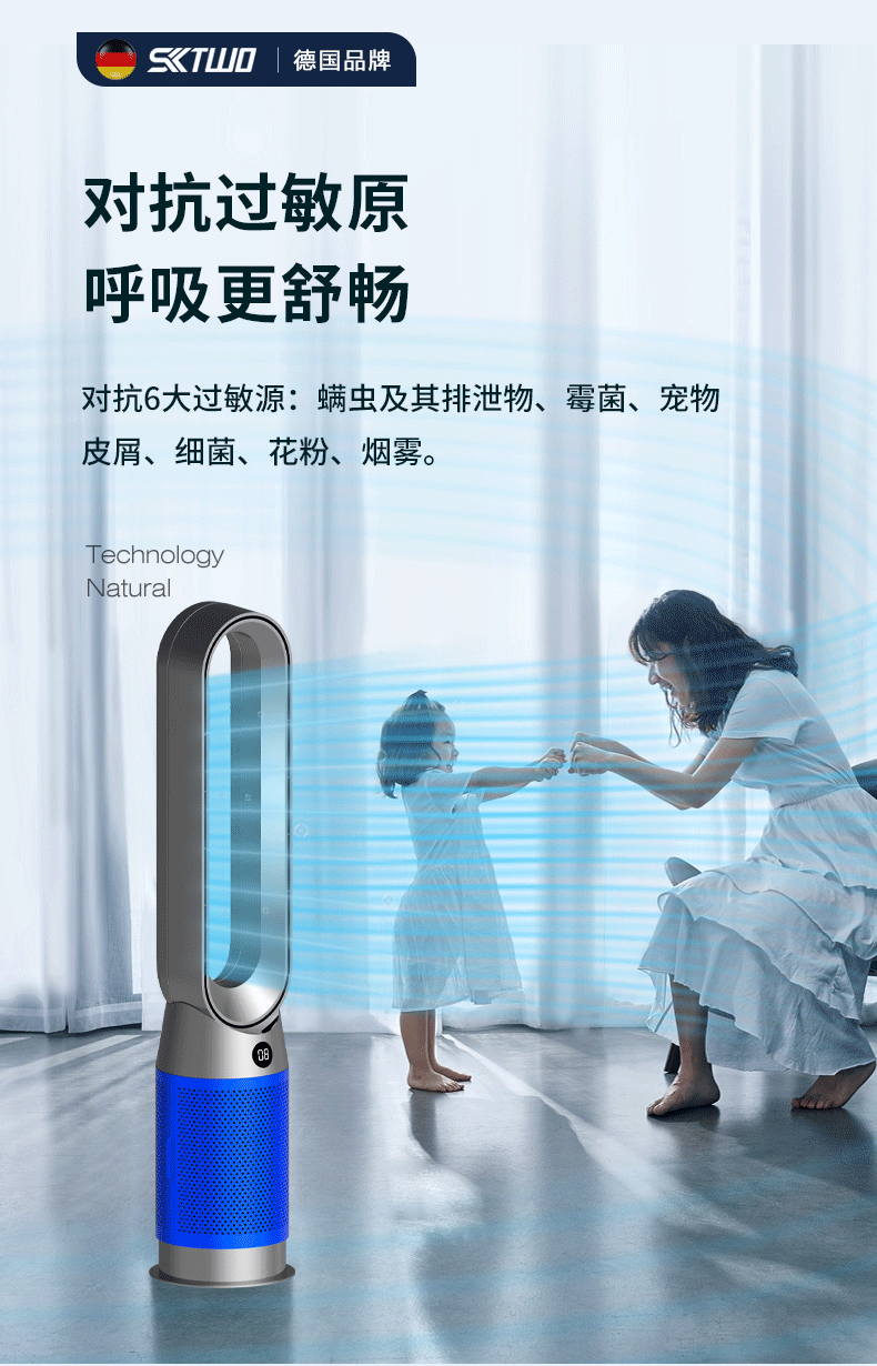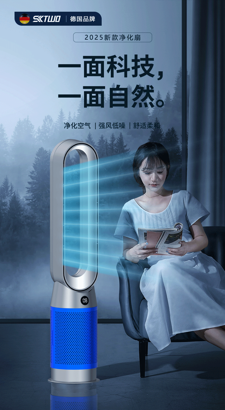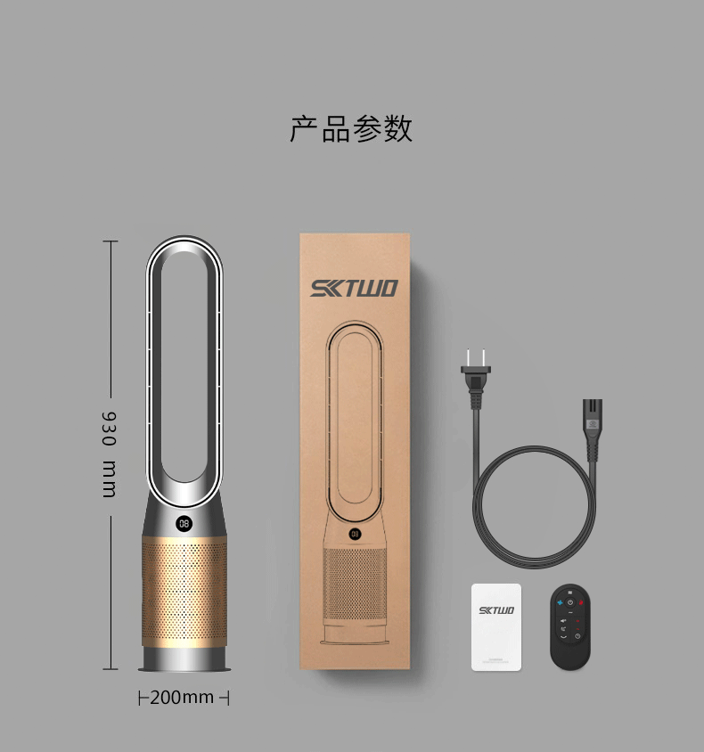 2025 新型 SKTWO 羽根なしファン家庭用空気清浄タワーファンデスクトップリモコン循環フロアファン