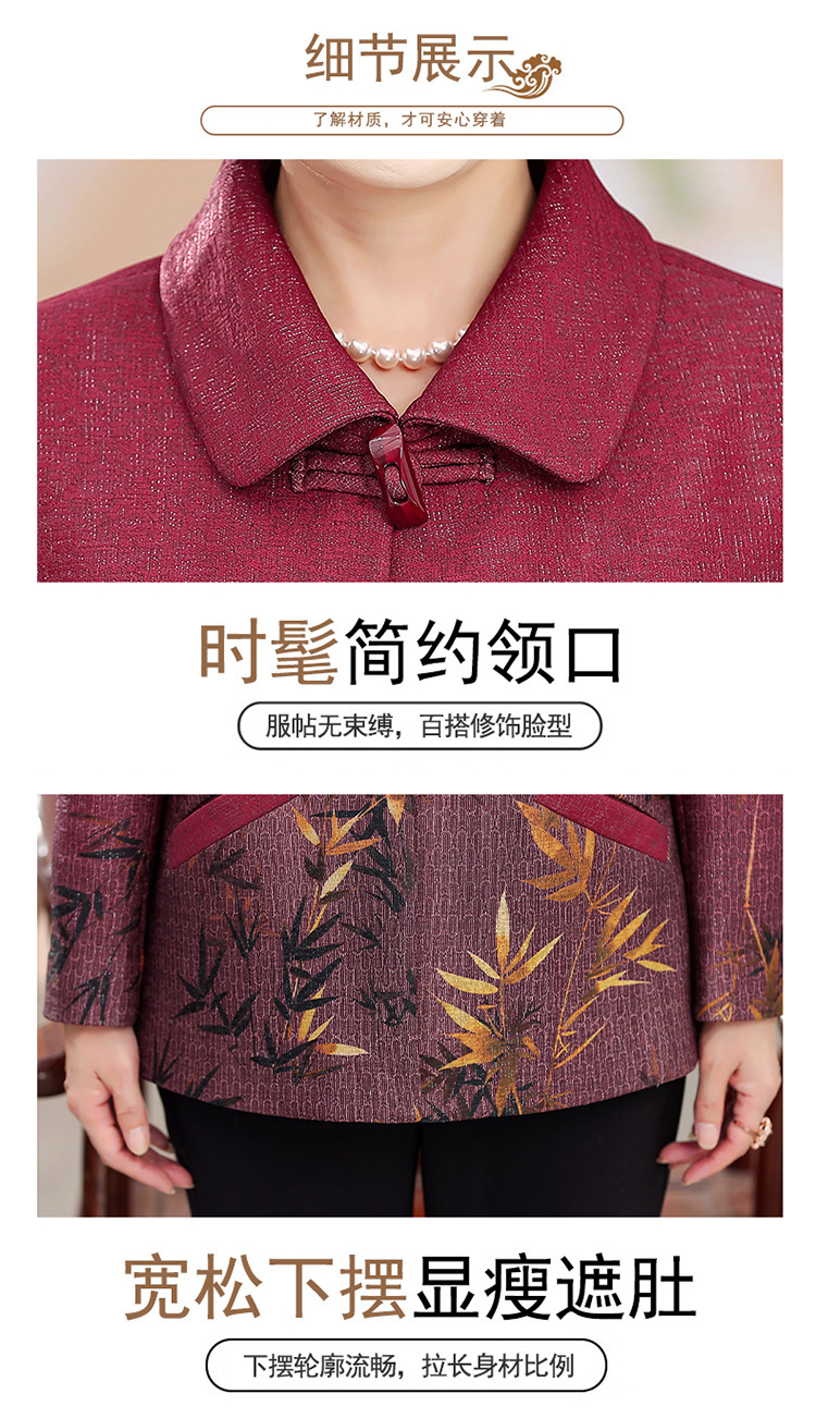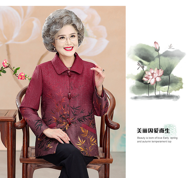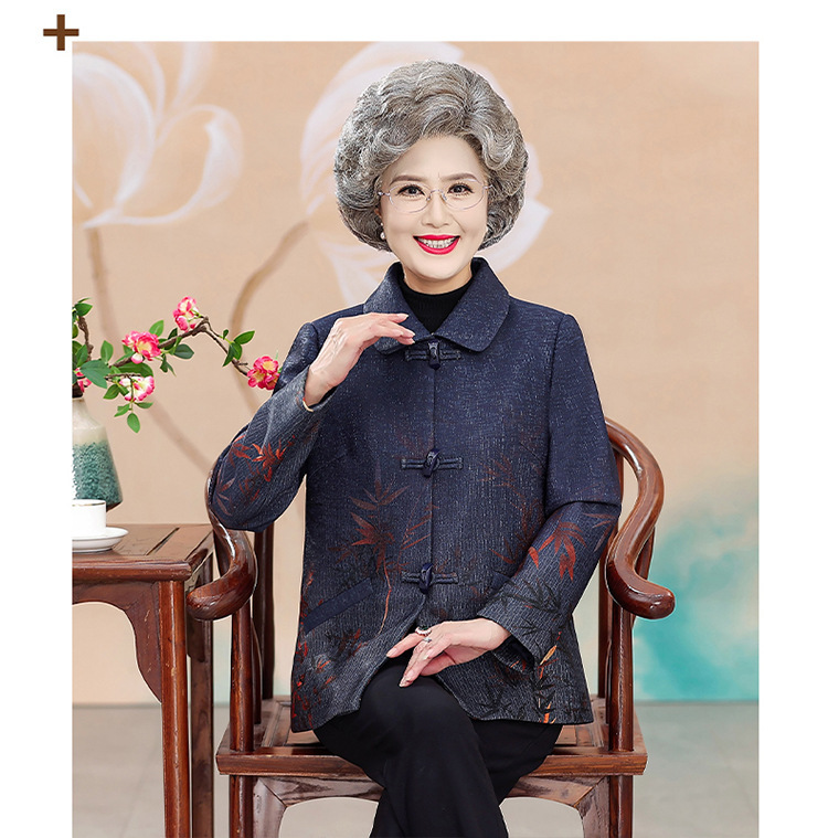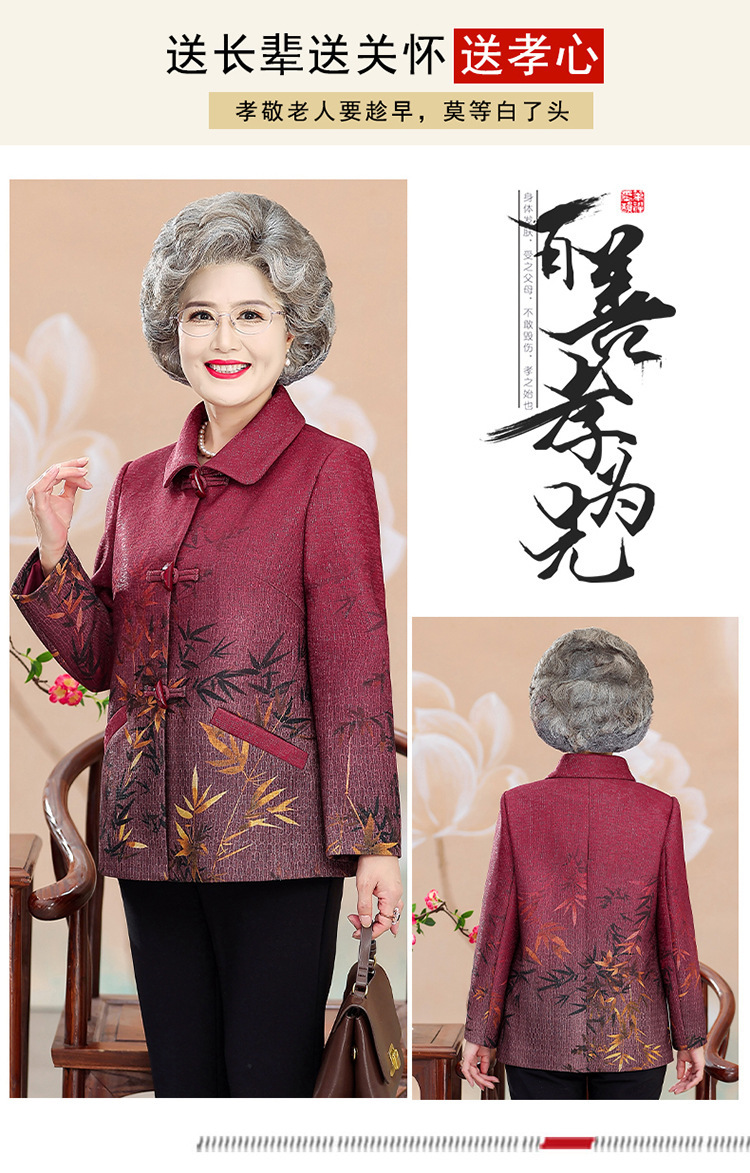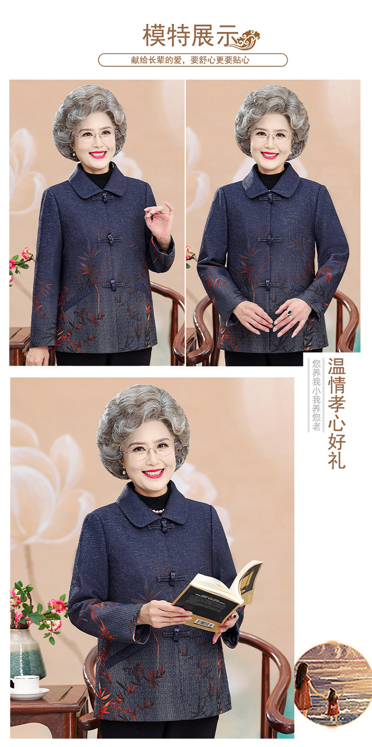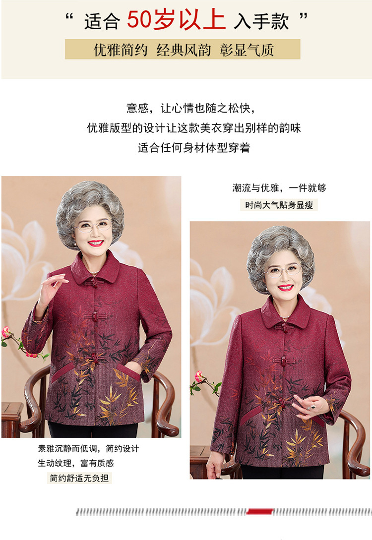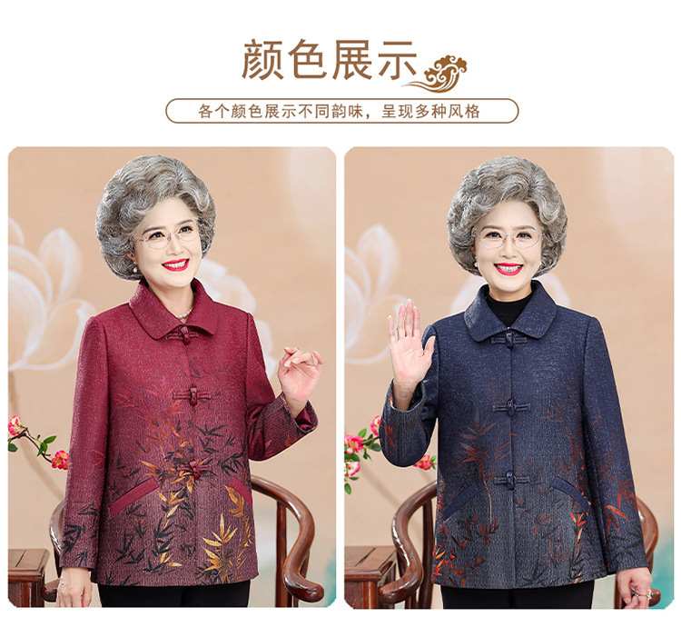 中高年の秋服の女性のおばあさんと春のコートの新型70歳のお母さんのファッションのラシャの上着のおばあさんの服
