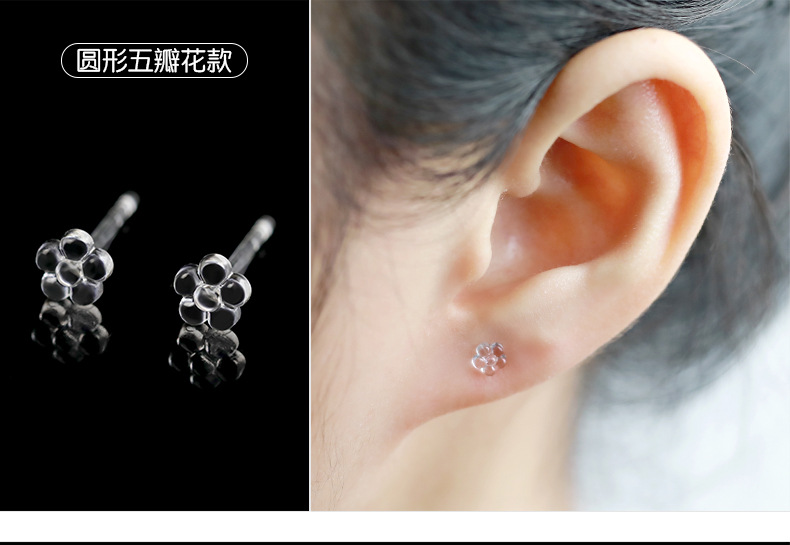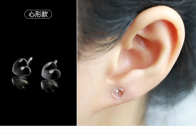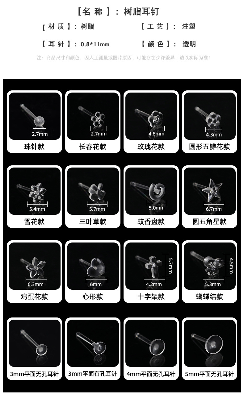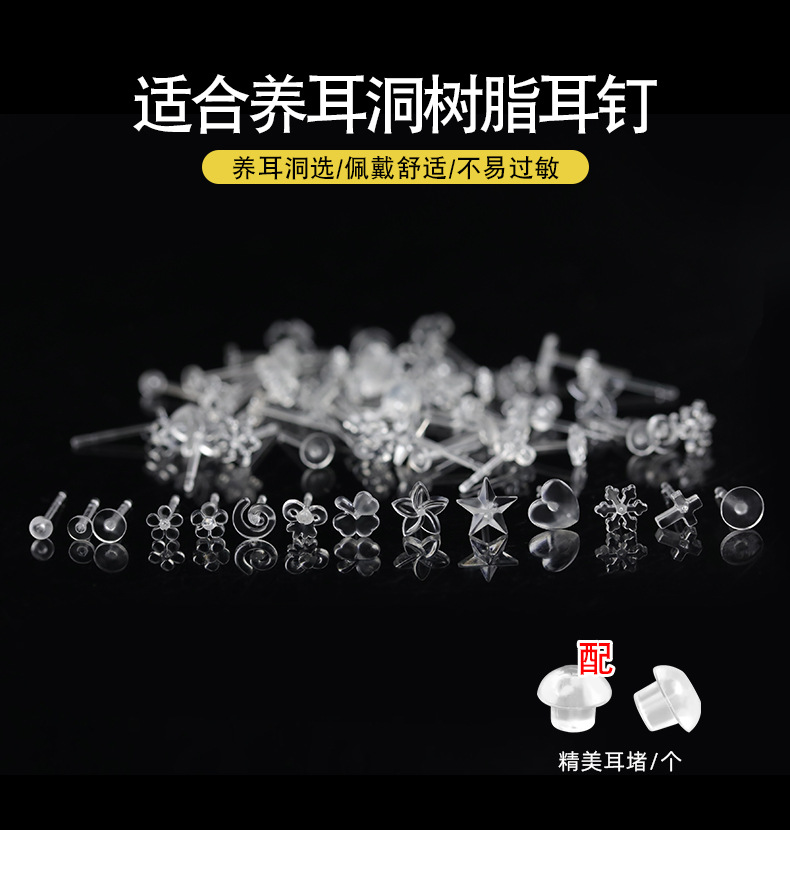 环保养耳洞树脂耳钉不易过敏学生透明防堵耳针塑料五角星爱心耳环
