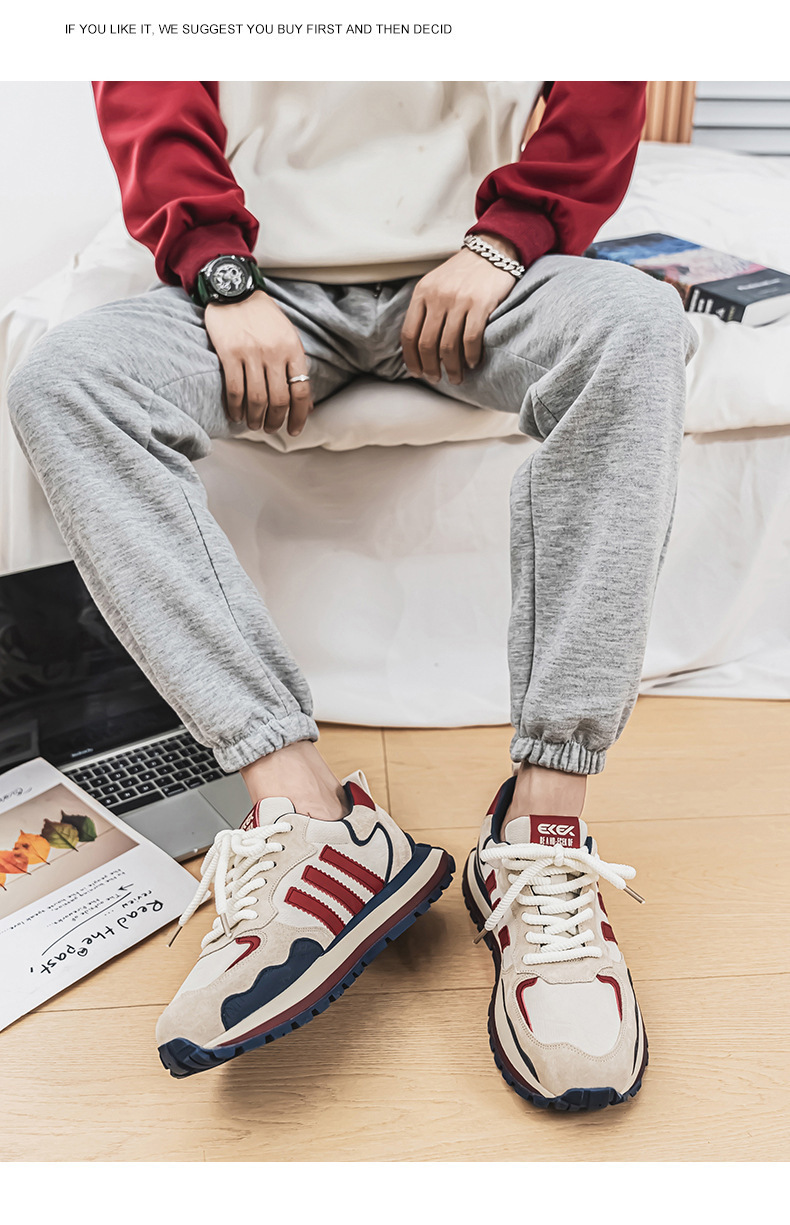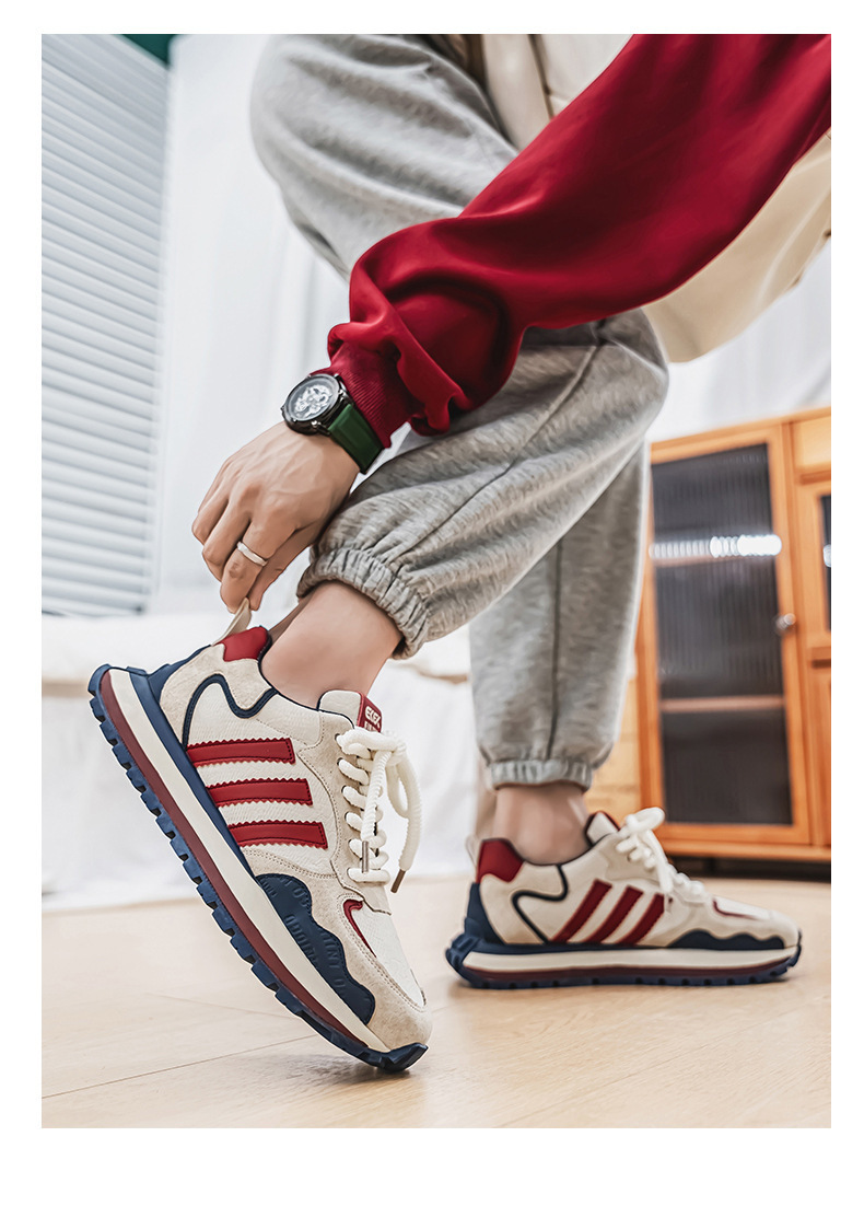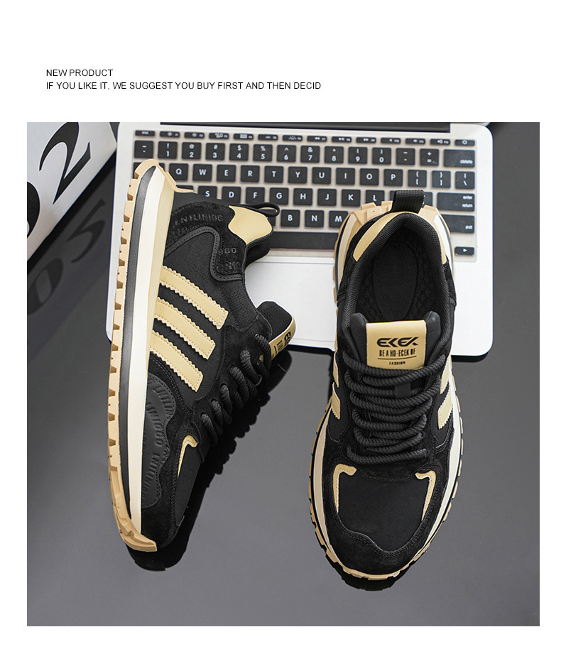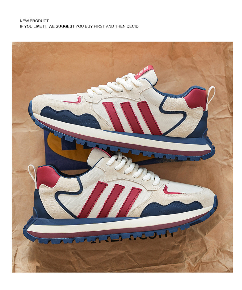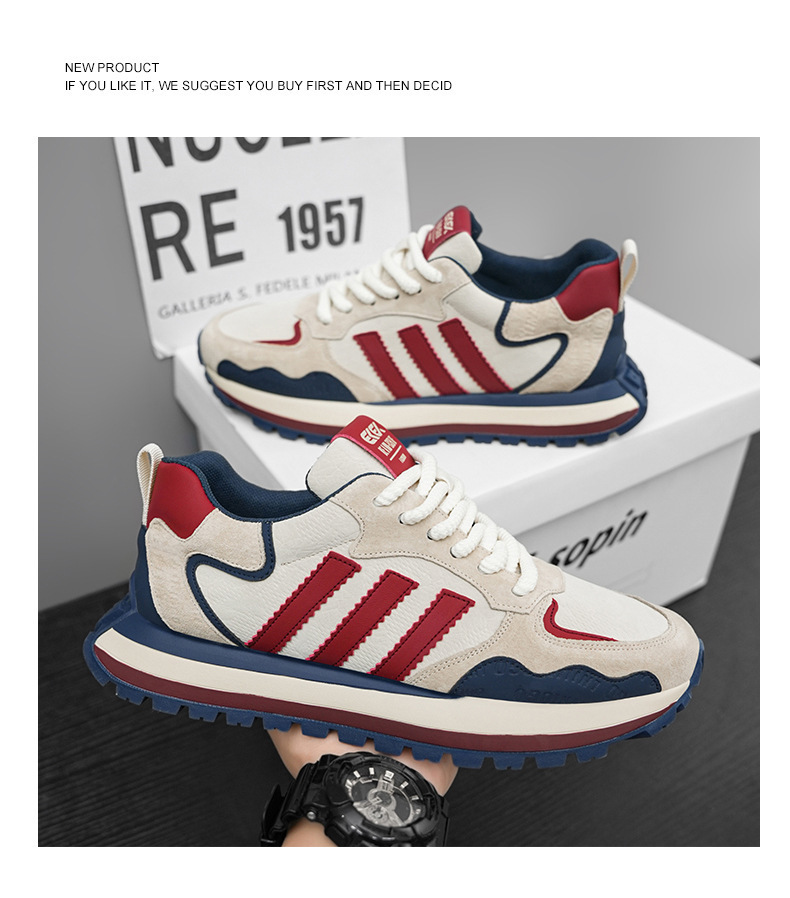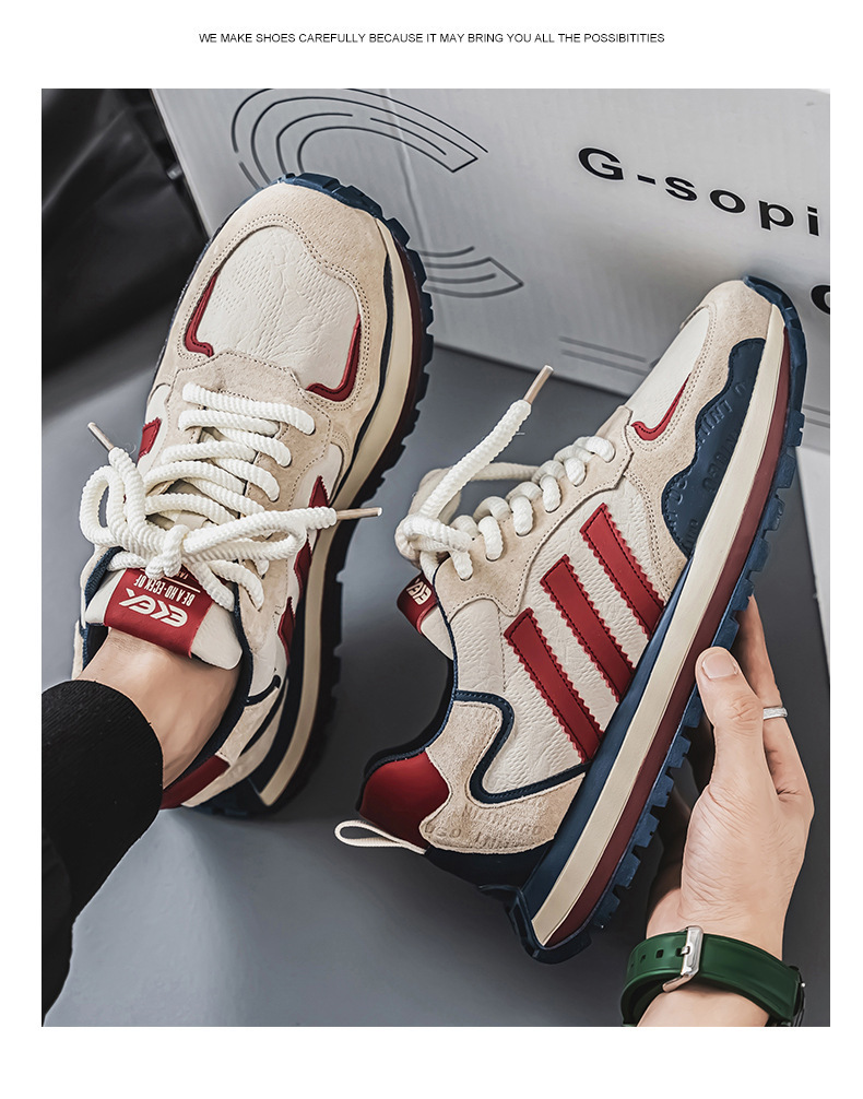 跨境新款男士皮面运动鞋潮流百搭休闲鞋轻便跑步鞋青年外贸潮鞋