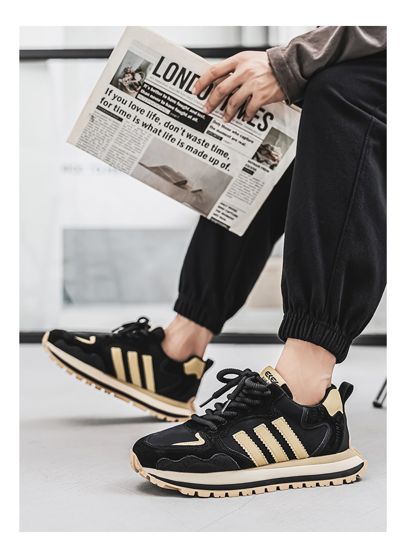 男性のファッションのお父さんの靴の2025国境を越えた新型のファッションの軽い男性の靴の皮の面は男性のレジャーの運動靴を合わせます。