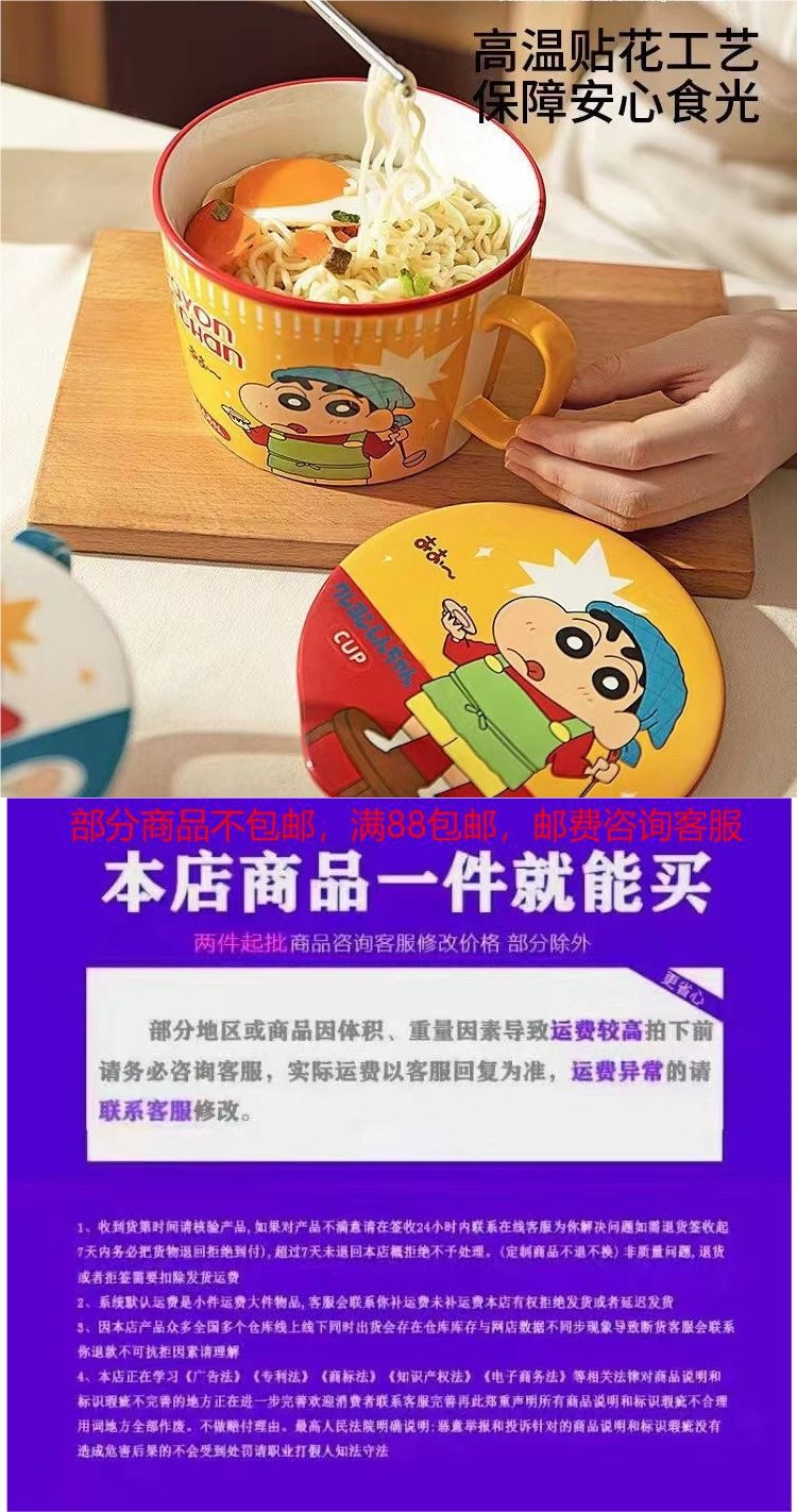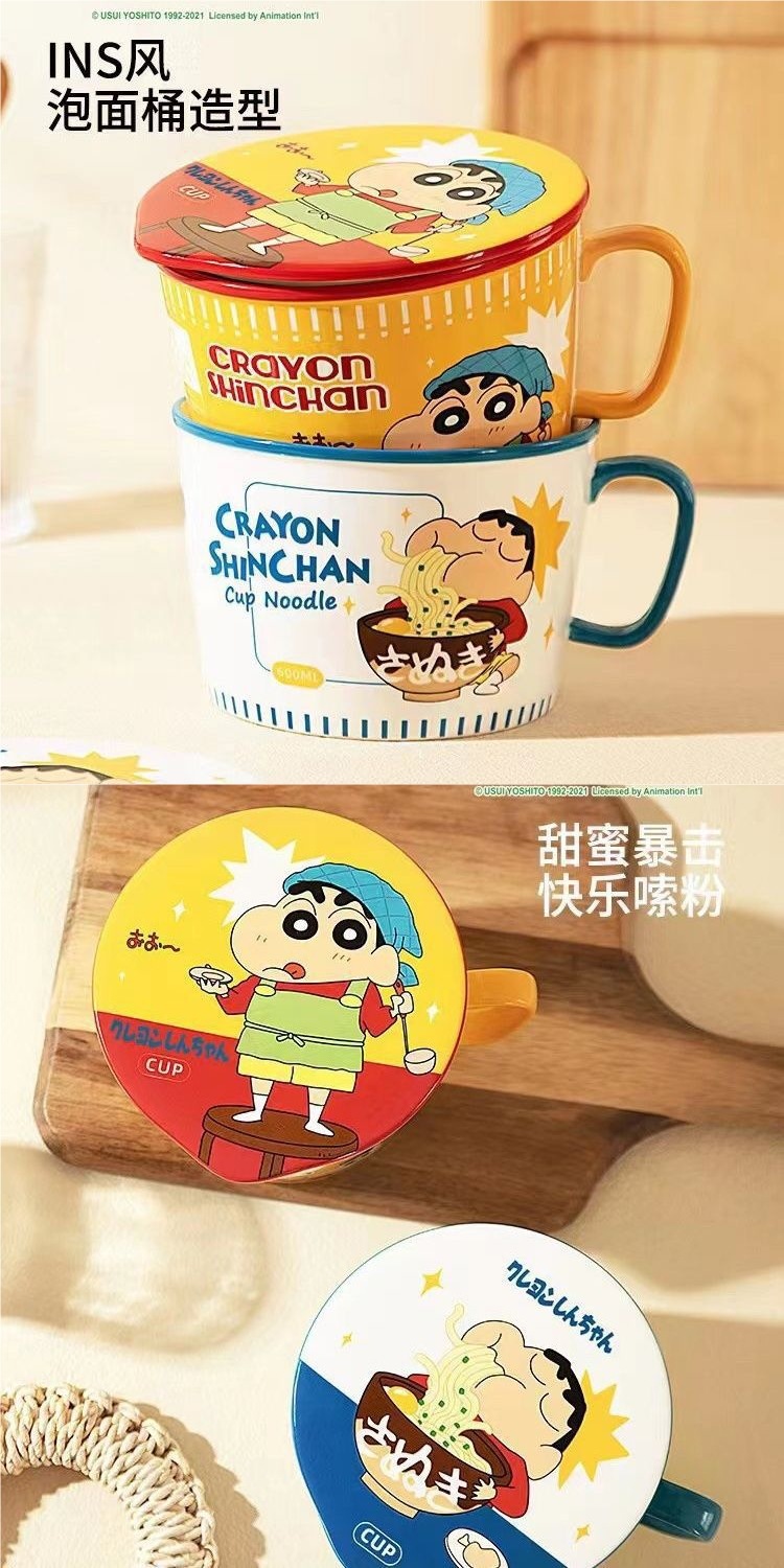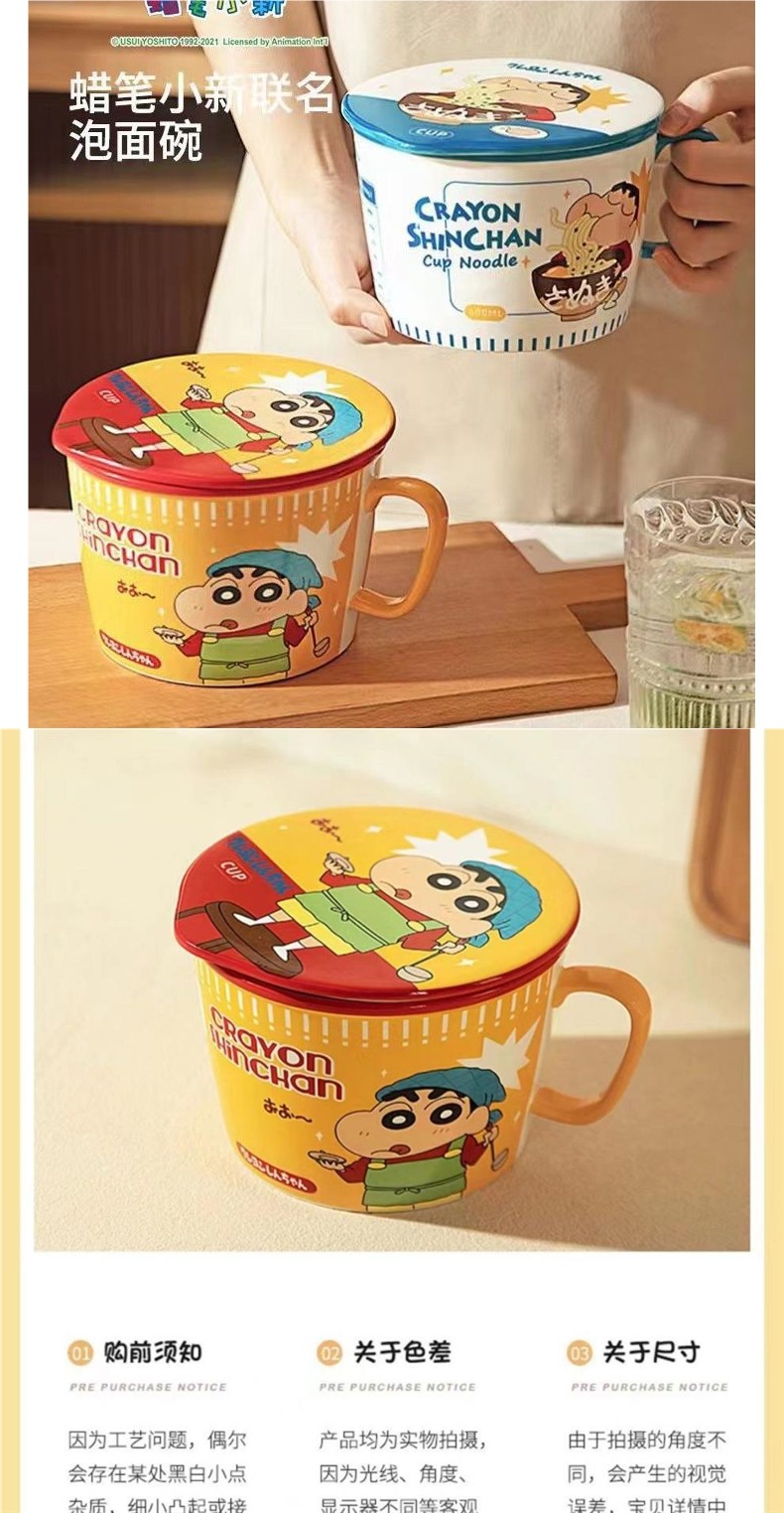 クレヨンしんちゃんカップラーメン日本式カップラーメン茶碗茶碗陶磁器学生かわいい大サイズ蓋付き寮用