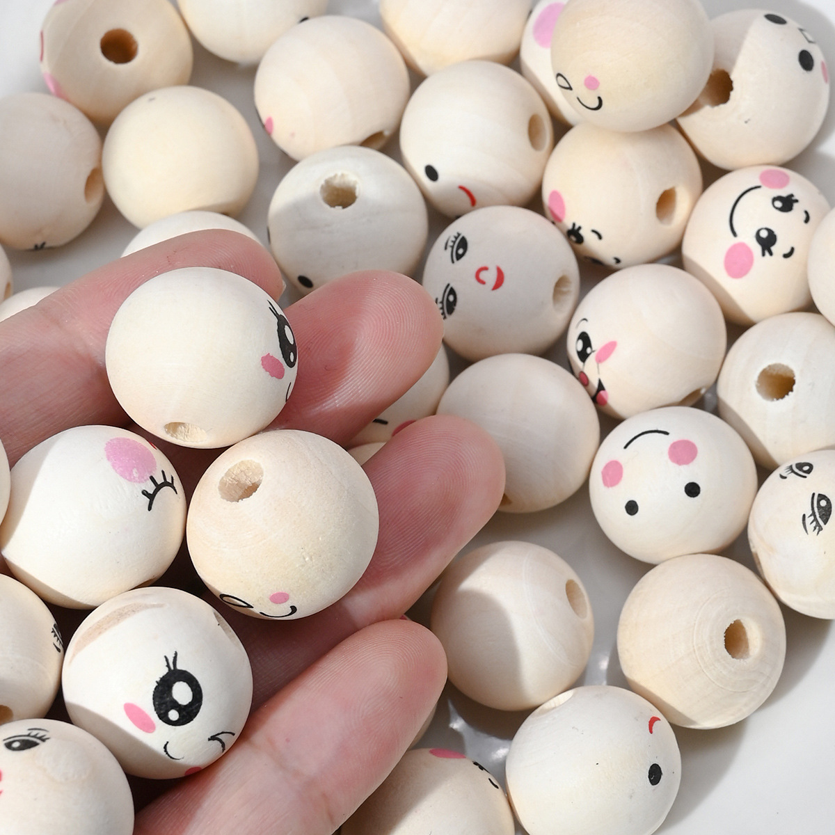 アマゾンの人気のあるプリント笑顔16mm 20mm木珠荷木原木色の表情の丸い玉の子供の頭の木珠