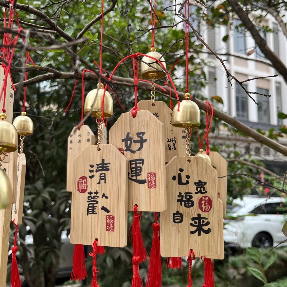 风铃祈福许愿吊牌雕刻内容印花印刷logo流苏批发木艺景区文创