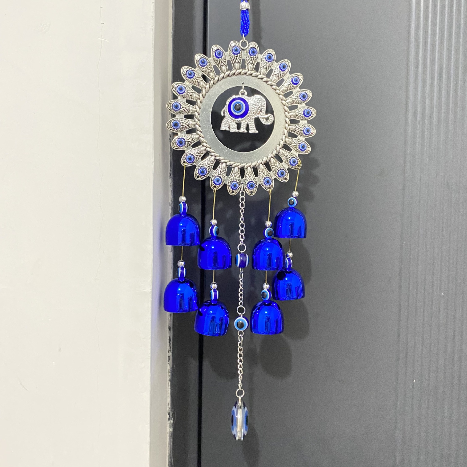 邪恶之眼金属风铃太阳花蓝眼睛吊坠铃铛土耳其护身符挂件花园悬挂