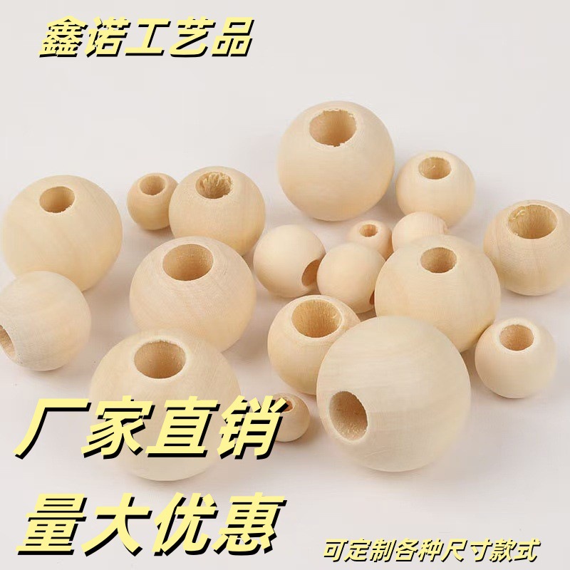 現物の木の玉の卸売りdiy材料の自動車の座布団の大きい穴の木の玉の縄の網の箱の木の玉の散珠の部品