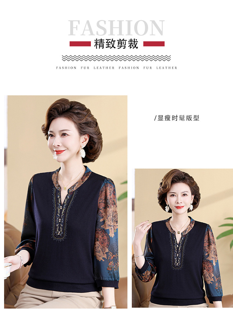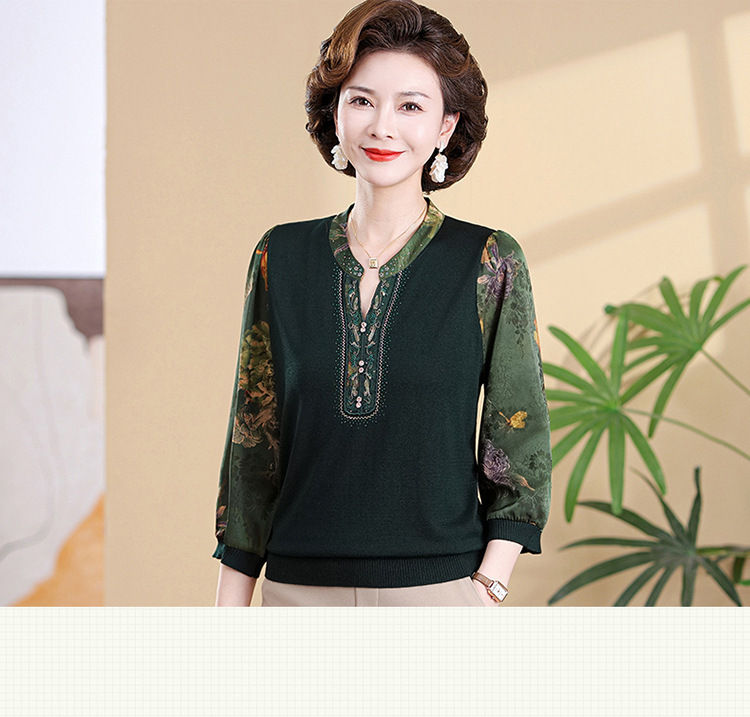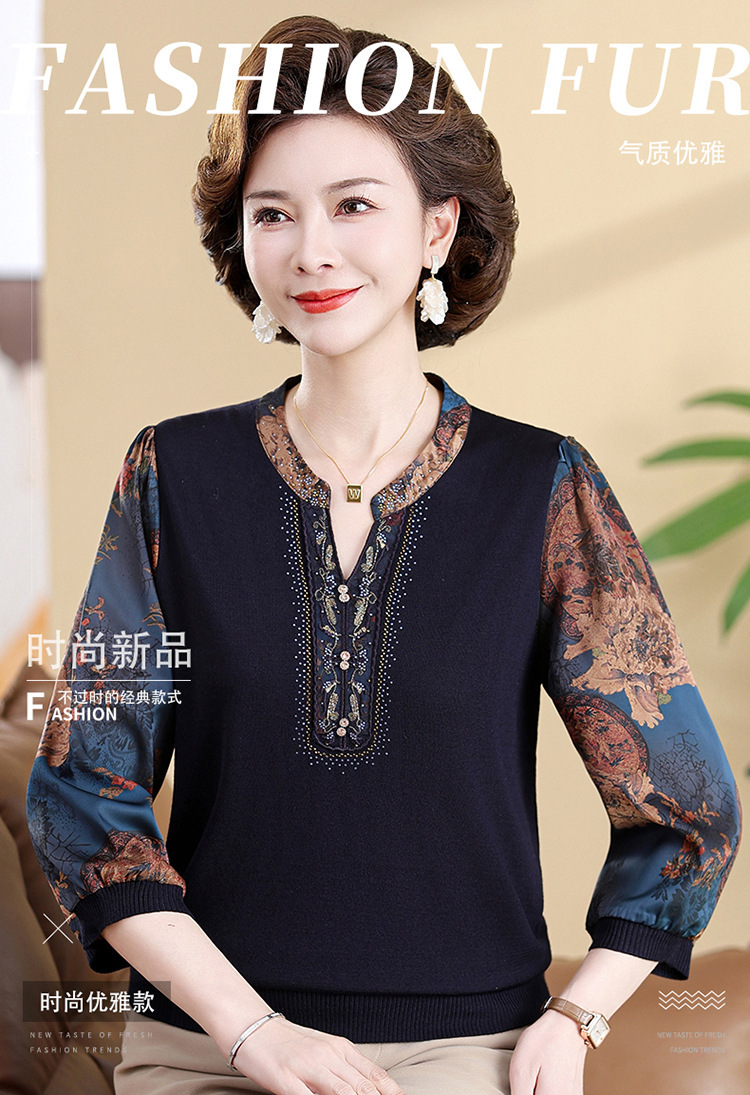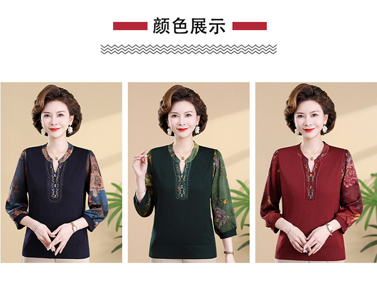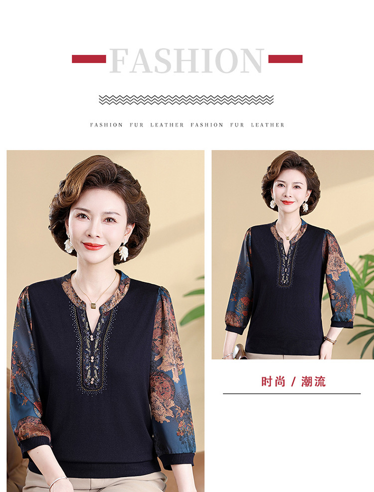 お母さんの春の服のtシャツの七分袖の小さいシャツの洋風の気高い中高年の女性の母親の服の春と秋の気質の上着