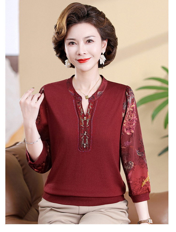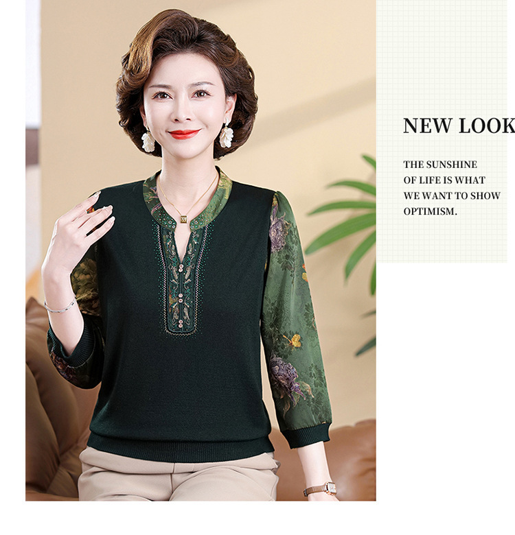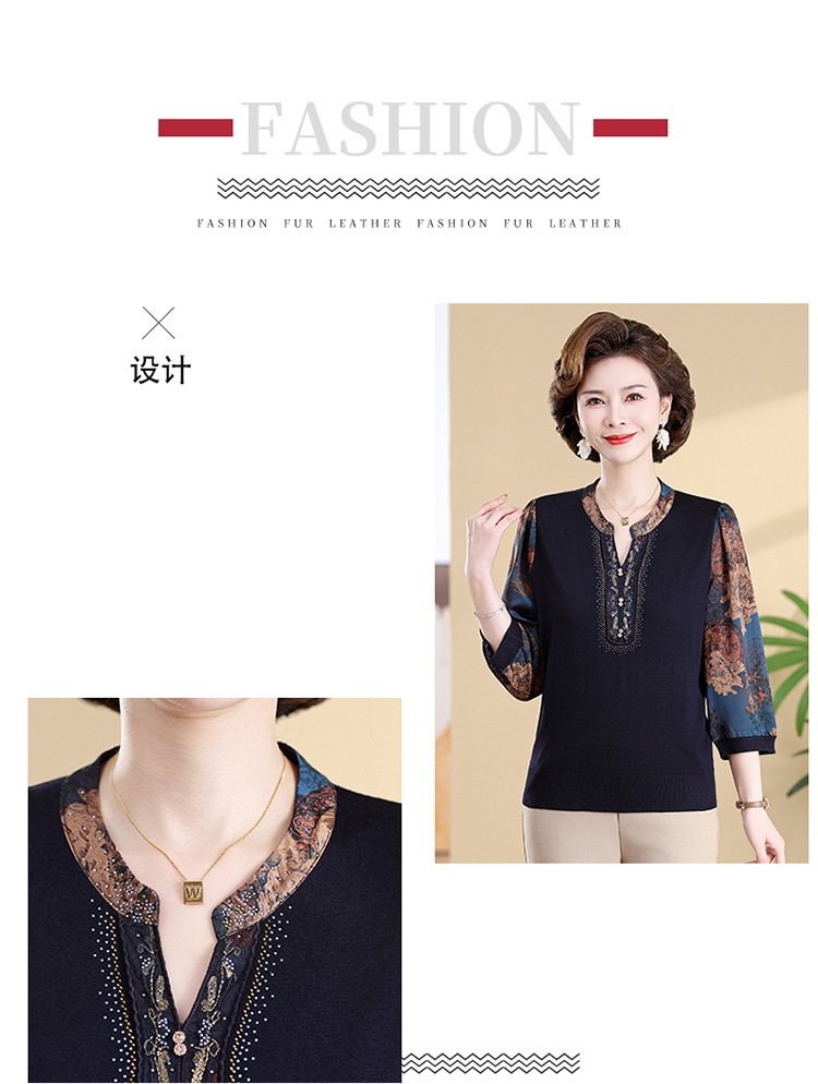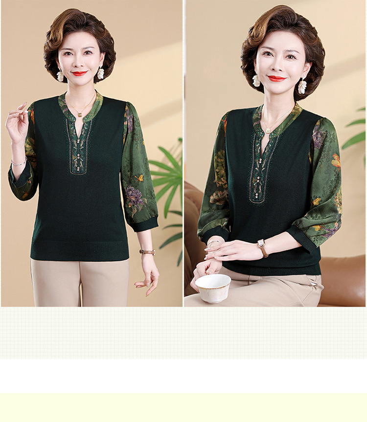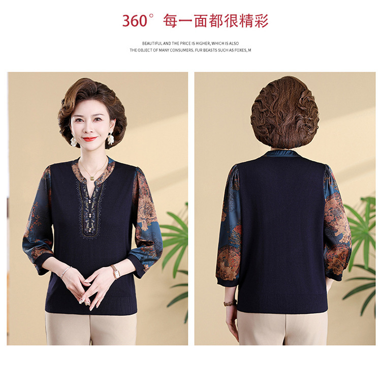 お母さんの春の服のtシャツの七分袖の小さいシャツの洋風の気高い中高年の女性の母親の服の春と秋の気質の上着