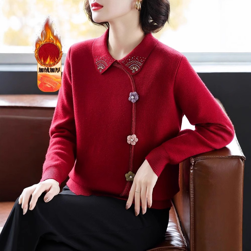 お母さんのベルベットの厚いセーター中年の女装秋冬服の本命年の赤い年越し服の中高年のシャツ