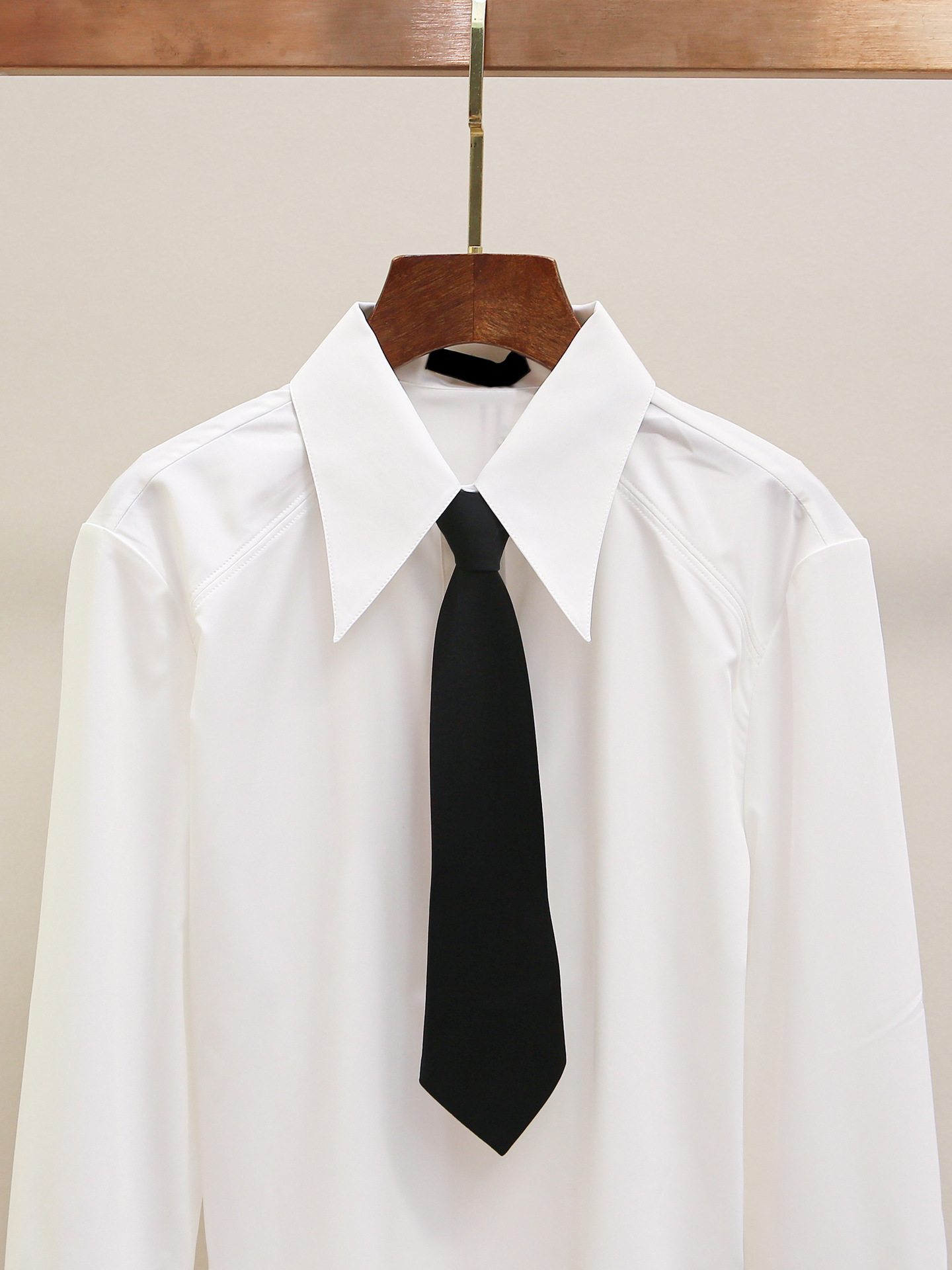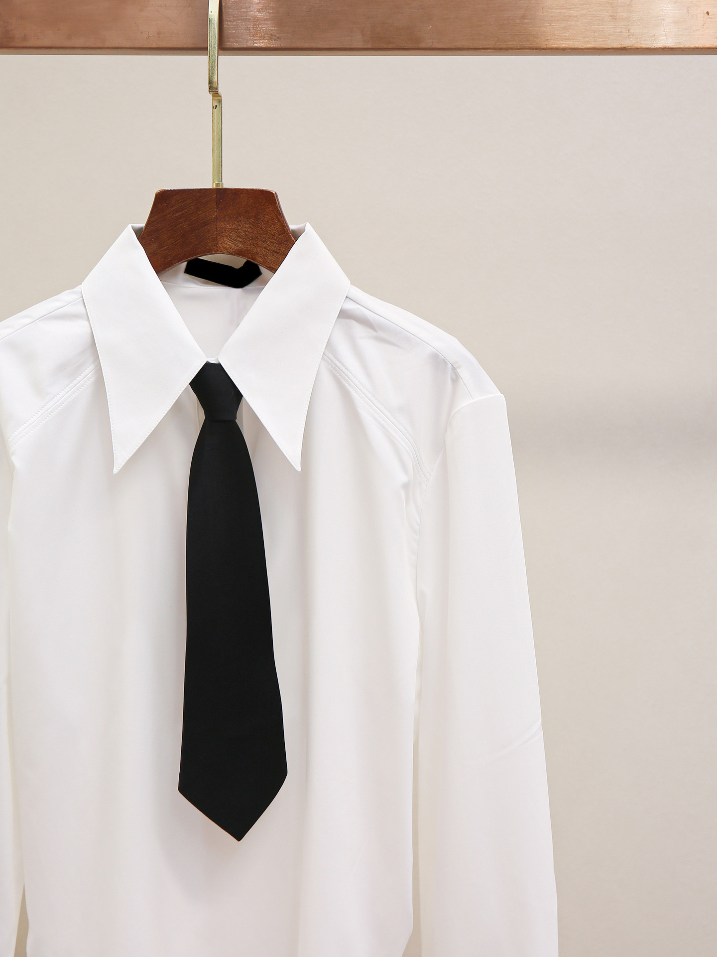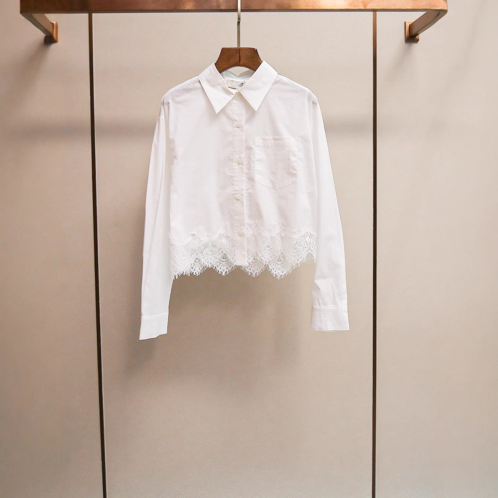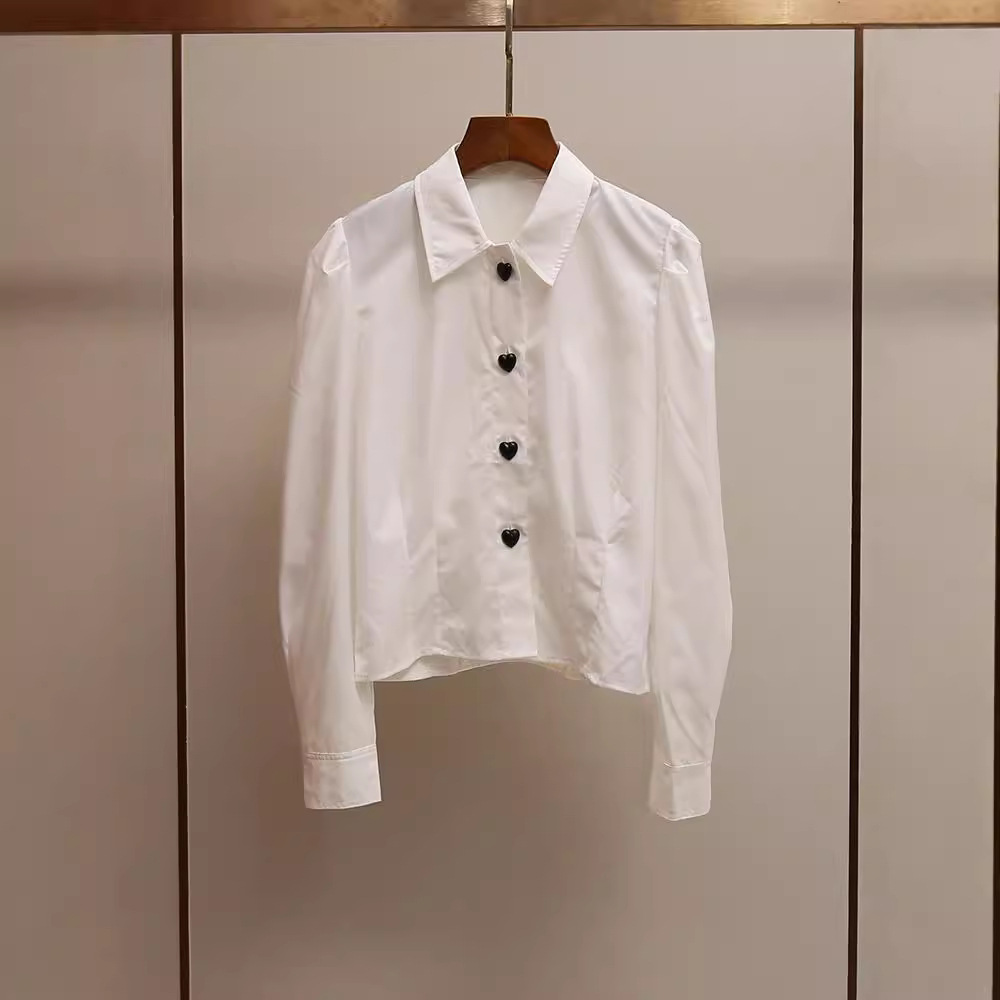 深セン南友高級婦人服春の新作フレンチラブボタンホワイトラペルショート長袖シャツトップ