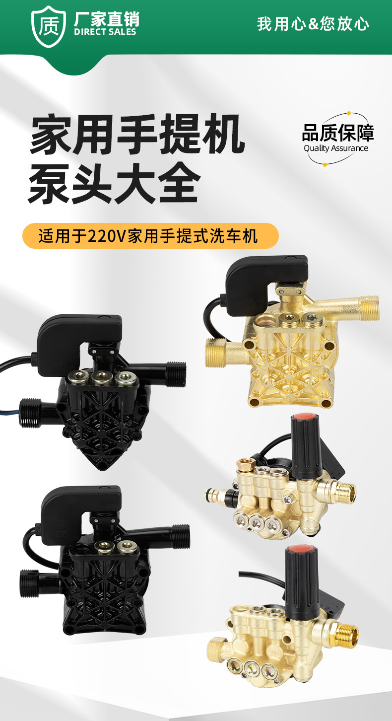 家庭用手提げ機高圧洗浄洗車機ポンプヘッド洗車器プランジャーアセンブリ部品220vブラシポンプ部品