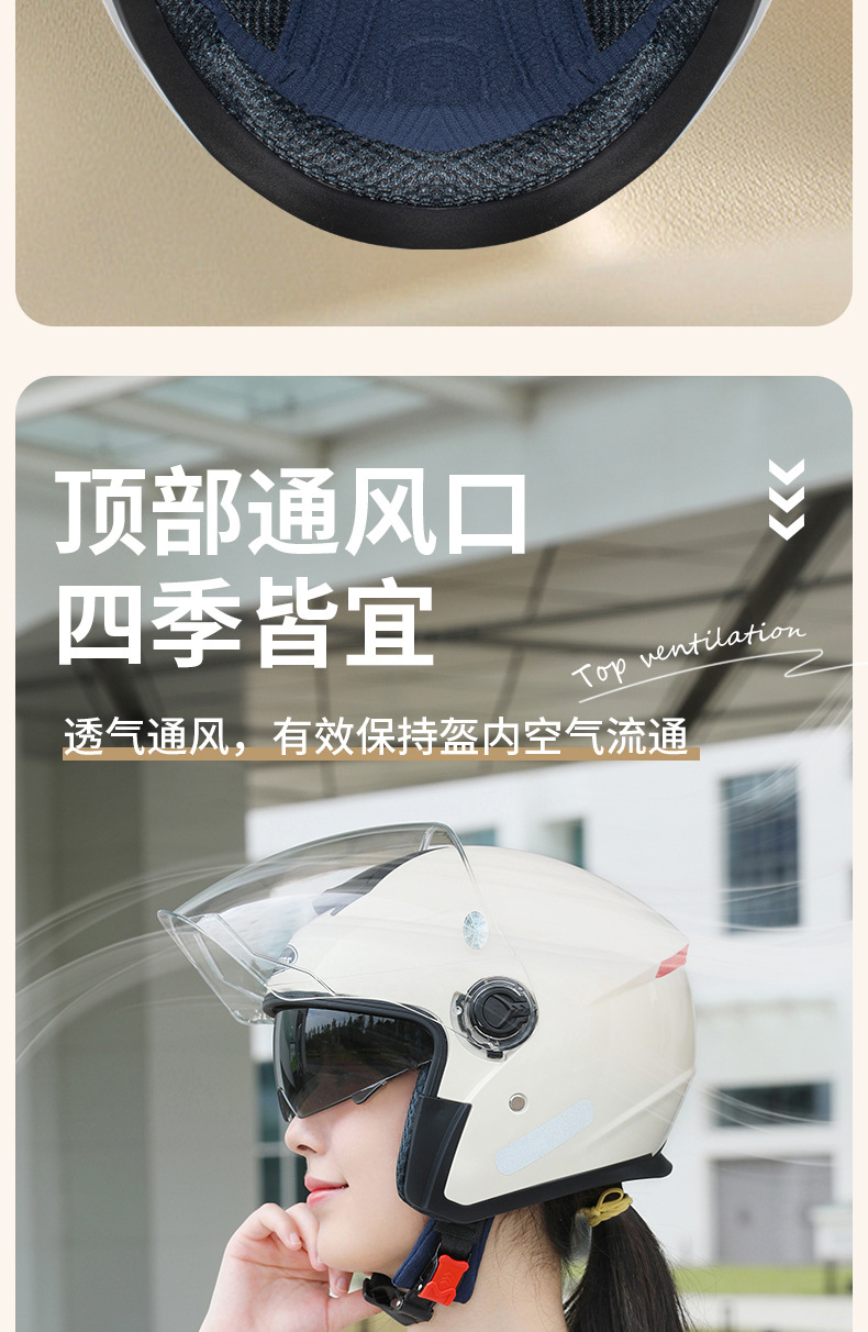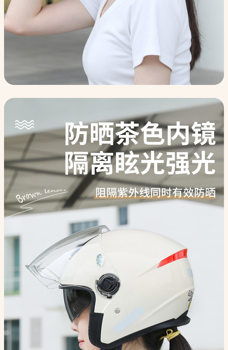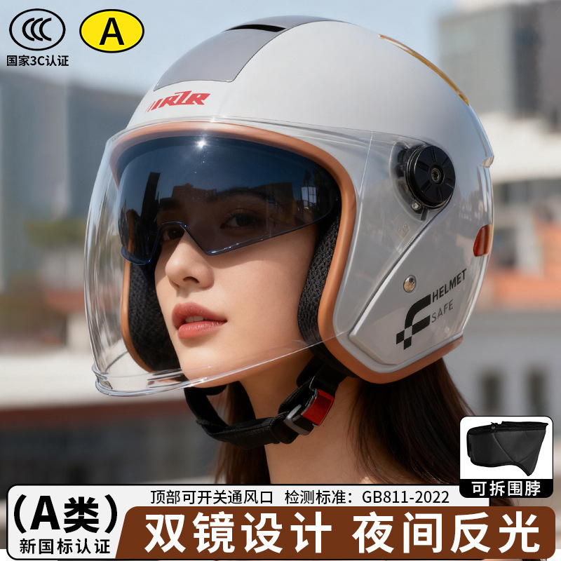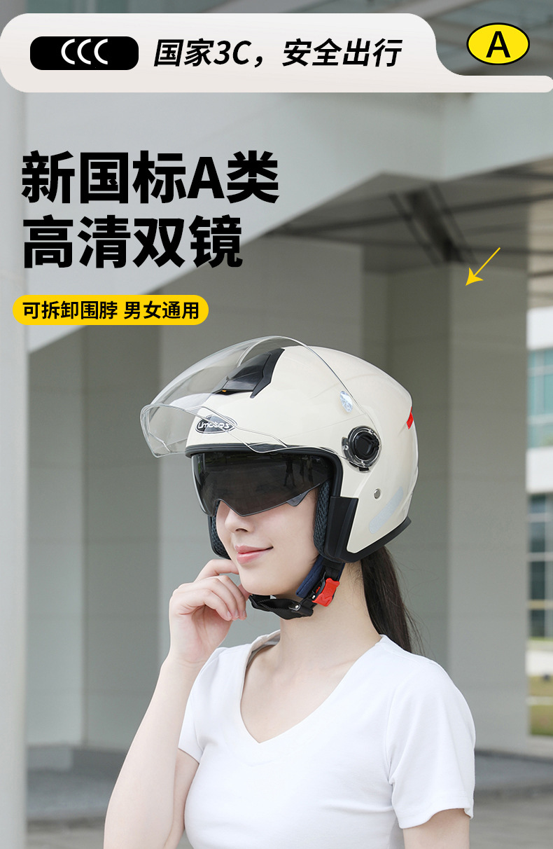 摩托车头盔3C认证A类四季通用款可调头围骑行双镜片电动车大半盔