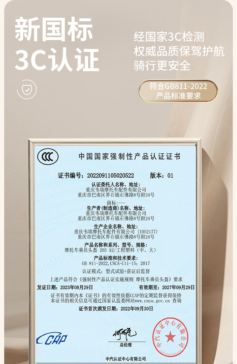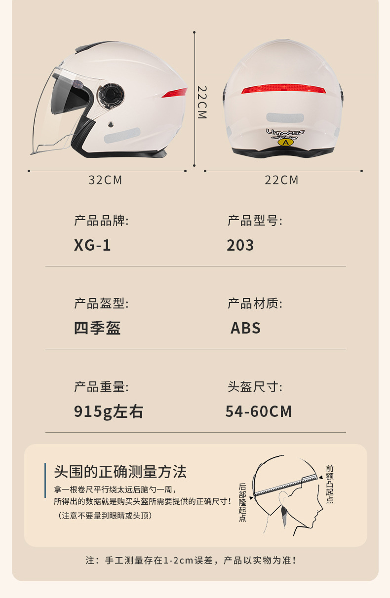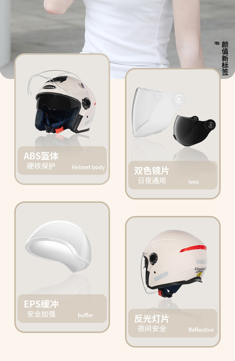 摩托车头盔3C认证A类四季通用款可调头围骑行双镜片电动车大半盔