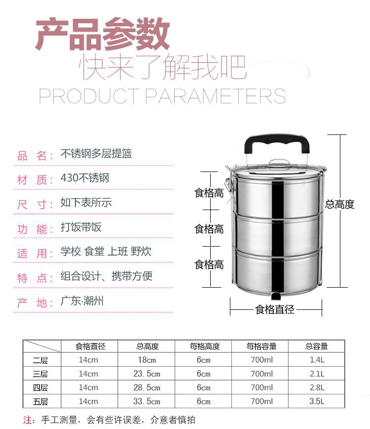 ステンレス手提げ多層弁当箱大容量超大型四階五階保温桶多人数層食事箱