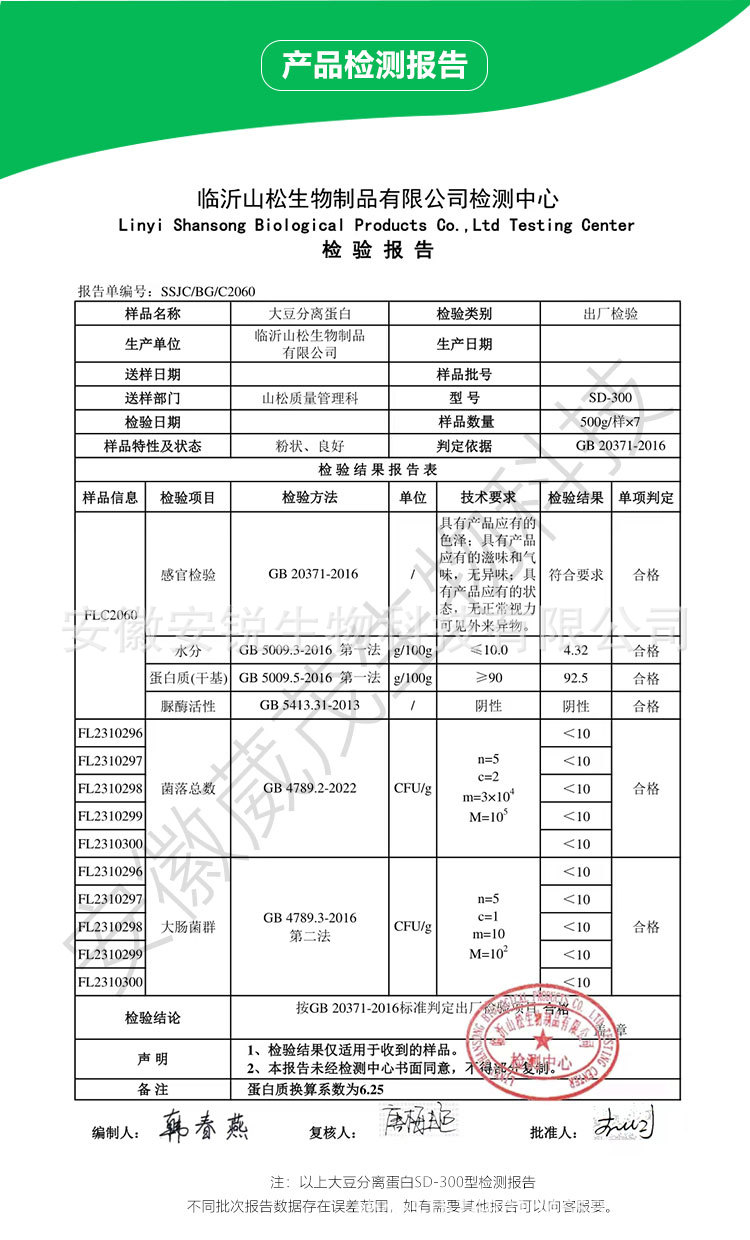 大豆分離タンパク質粉食品級大豆タンパク質山松分離卵アルブミン含有量90