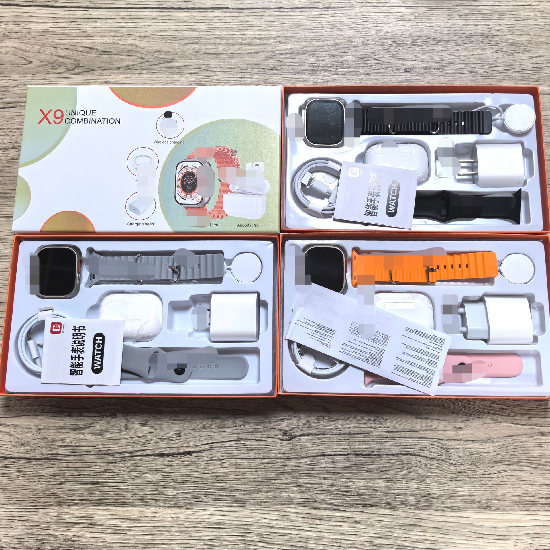 越境販売 華強北X9スマートウォッチULTRA3 Bluetoothイヤホン6in1セット ダブルストラップギフト 中国語対応