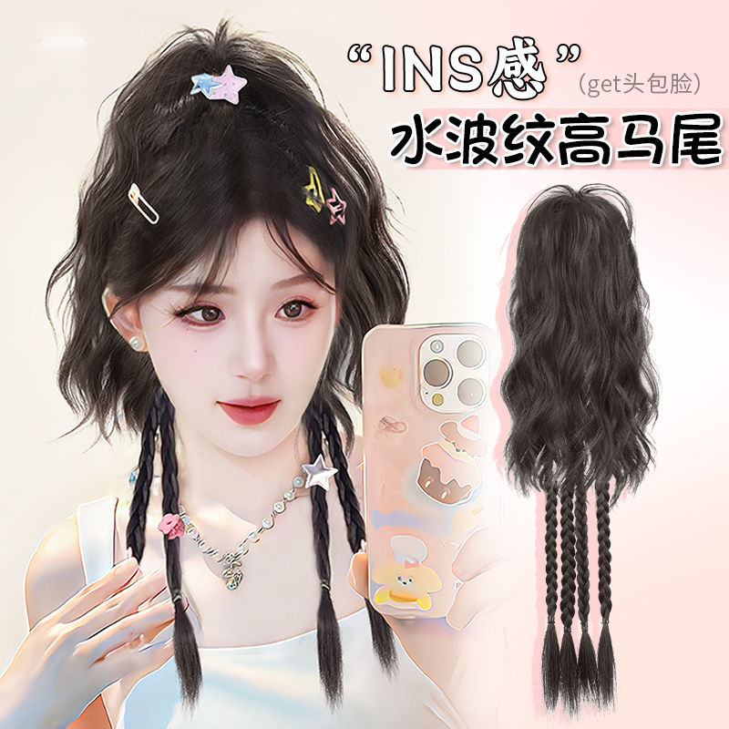 女性用シームレスウィッグ三つ編みポニーテール、怠惰な気質、ローザイズ、ナチュラルレイヤード、わずかにカーリーな人工毛ポニーテール