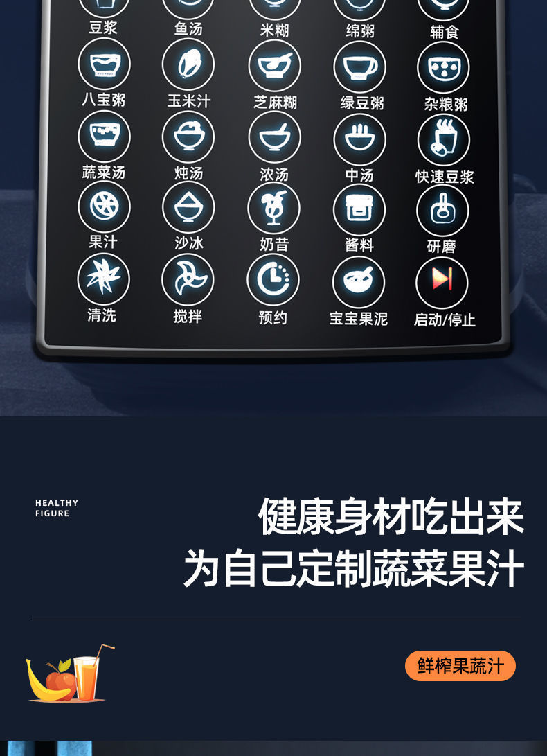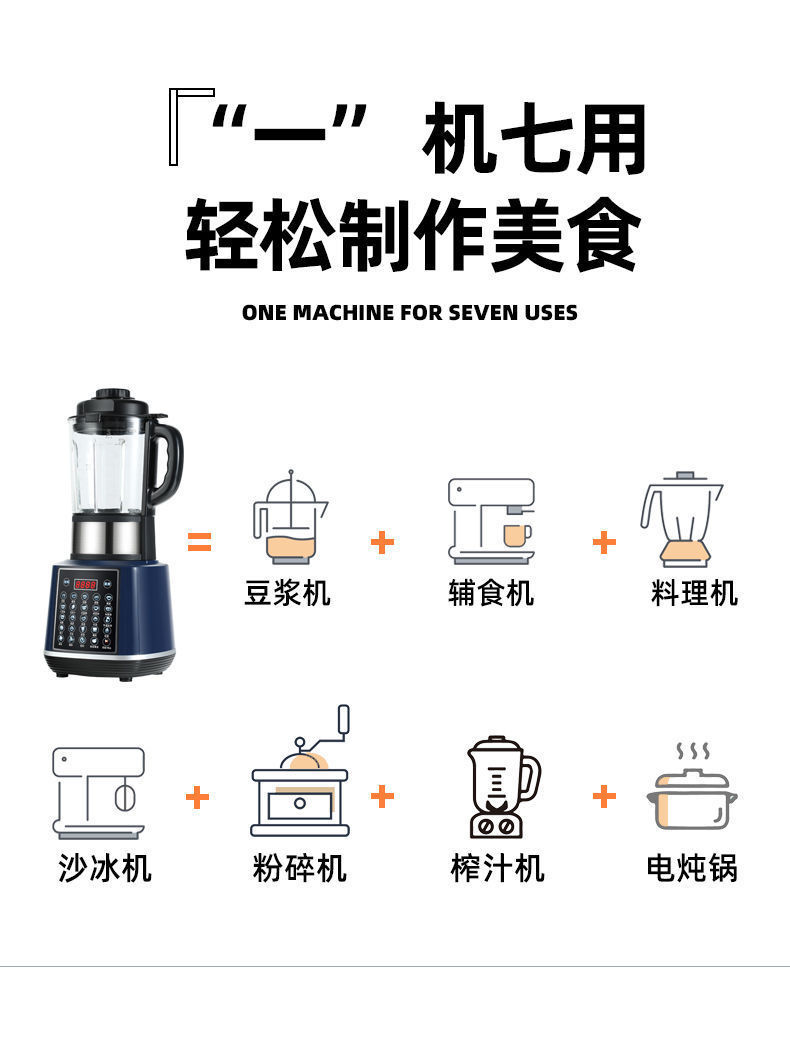 破壁机多功能豆浆机家用全自动无渣免滤果汁搅拌料理辅食机跨境