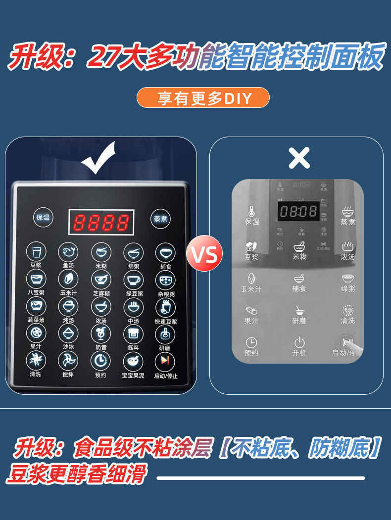 【工場直販】壁破壊機加熱家庭用全自動豆乳機多機能フィルターフリー健康調理機