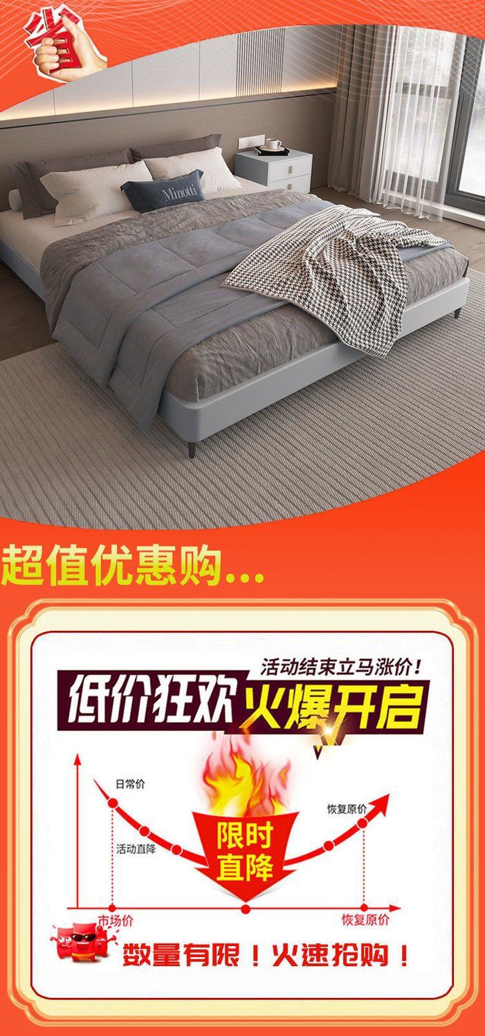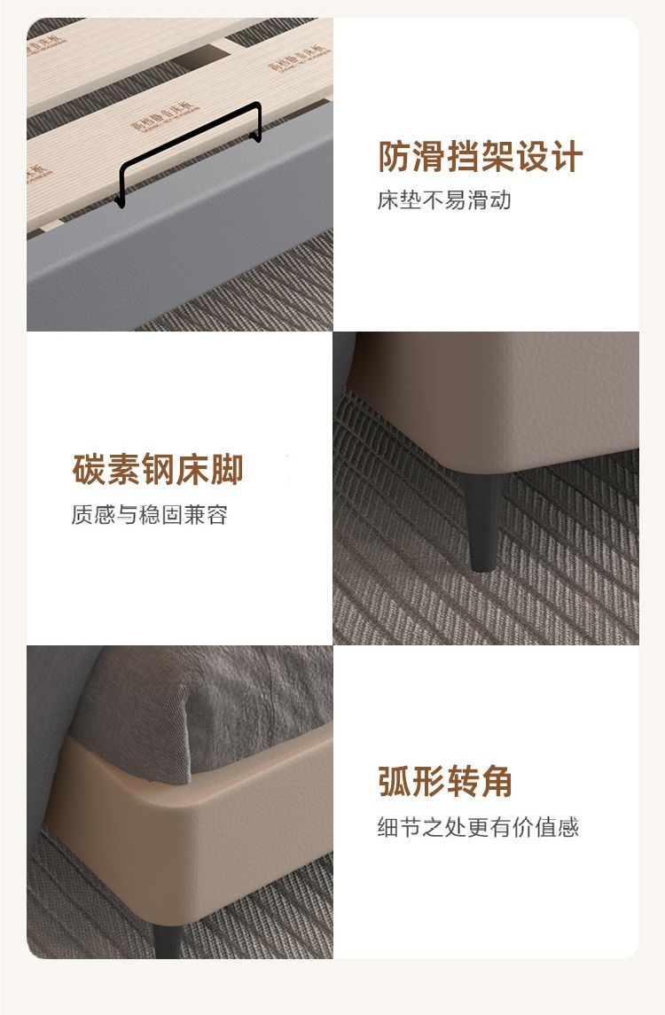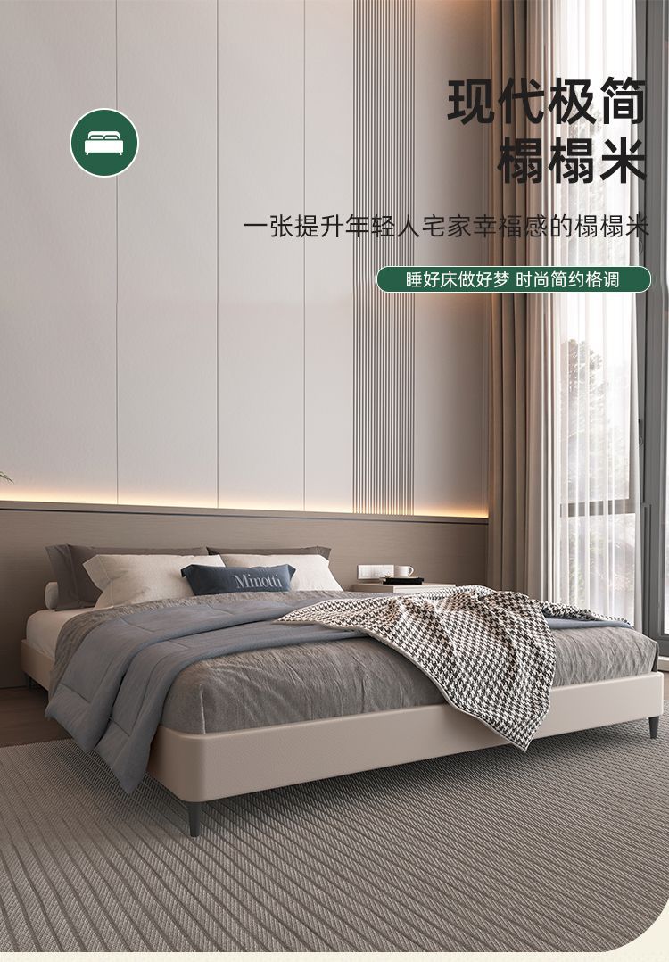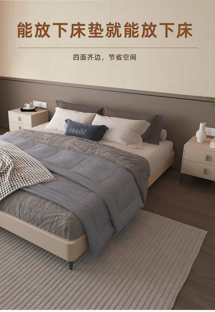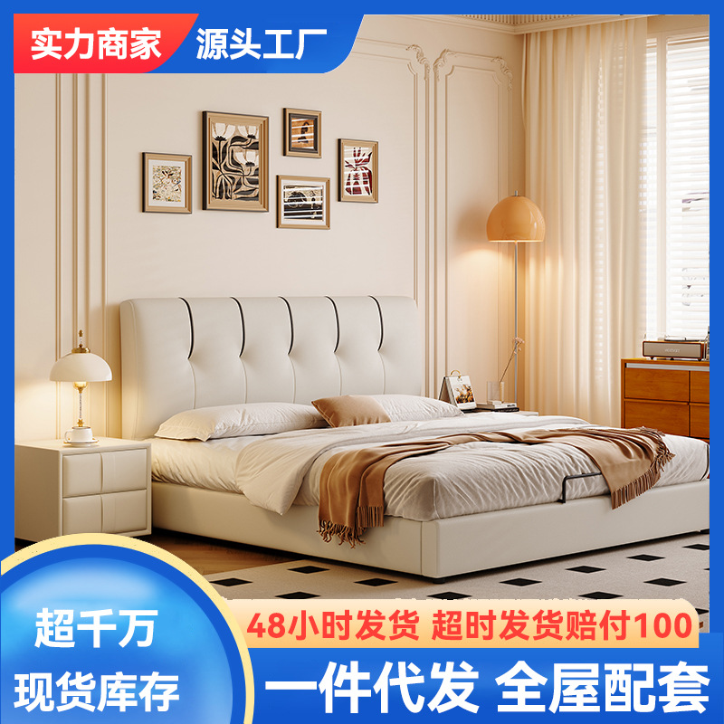 ライトラグジュアリースタイル 1.5m ベッドモダンホーム小型ソフトベッド 1.8m ファッショナブルなマスターベッドルームダブルシンプルで雰囲気のあるレザーベッド