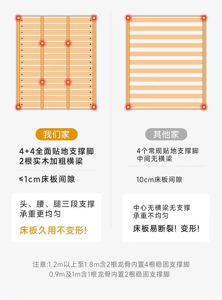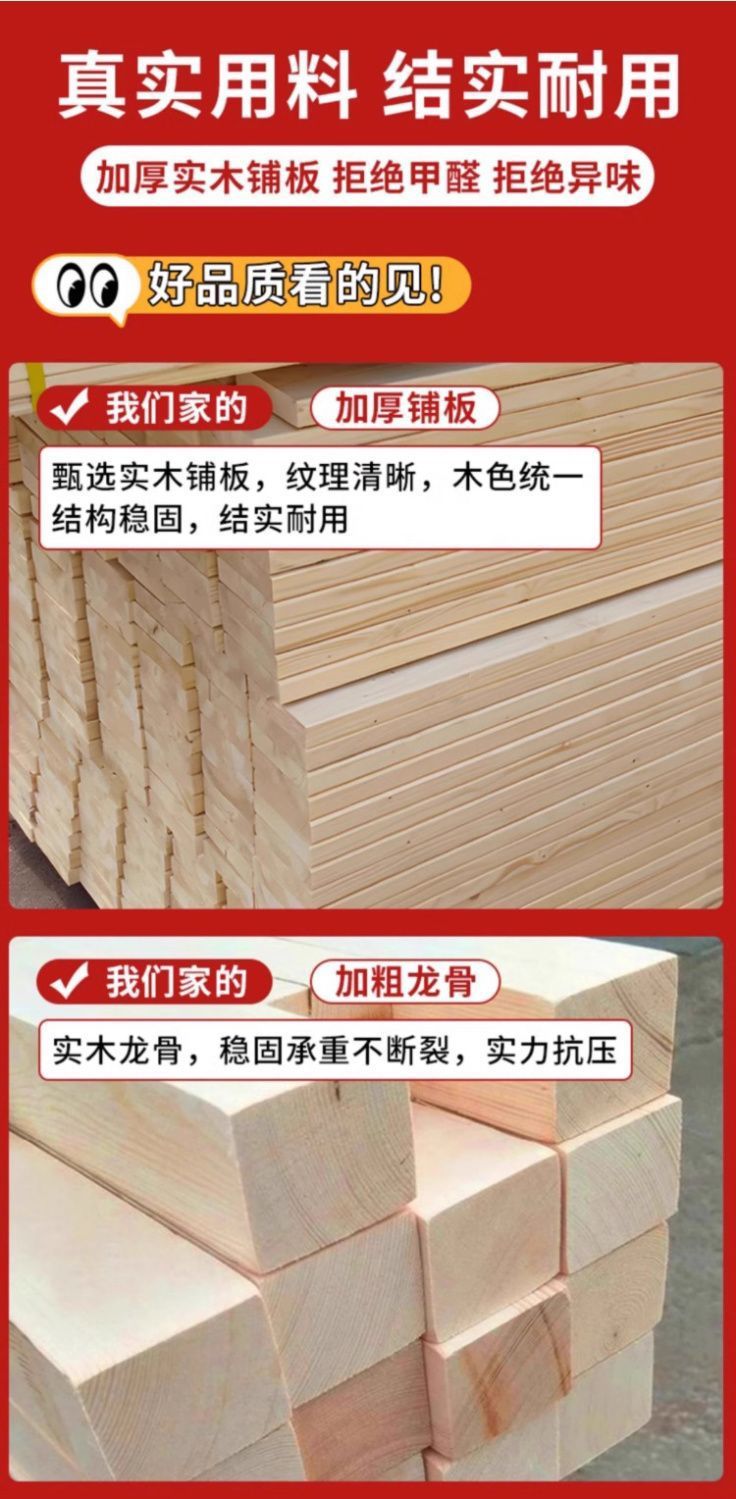 全实木无床头床双人床1.2/35/5/8米无靠背床架子塌塌米排骨架