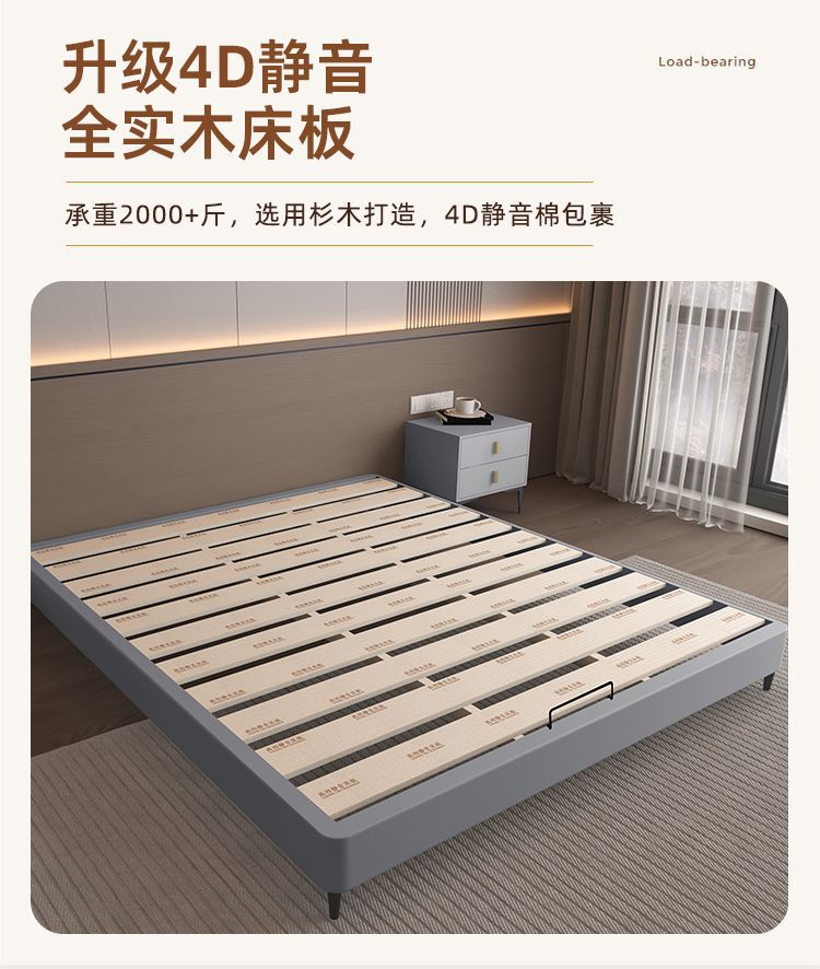 侘び寂び風の軽奢テクノロジー布製ベッド、ヘッドレスの浮遊式ベッド、主寝室用ダブルベッド、モダンでシンプルな畳ベッド、収納付き