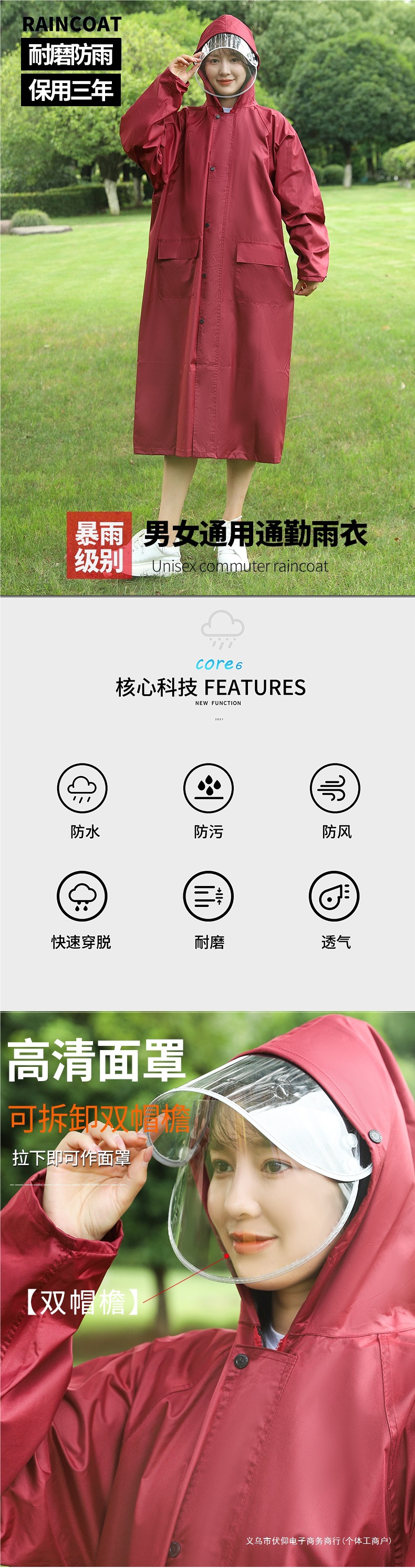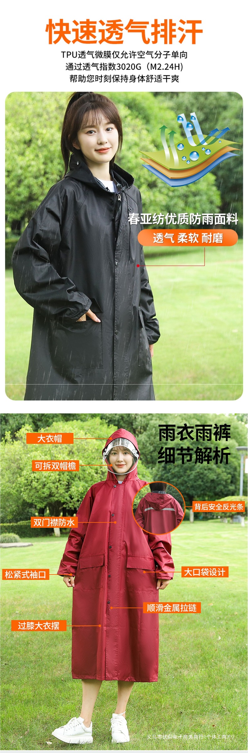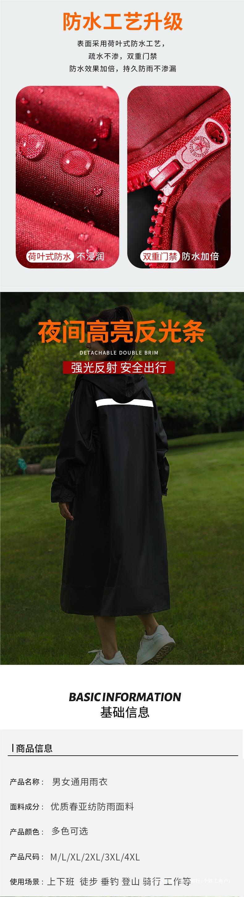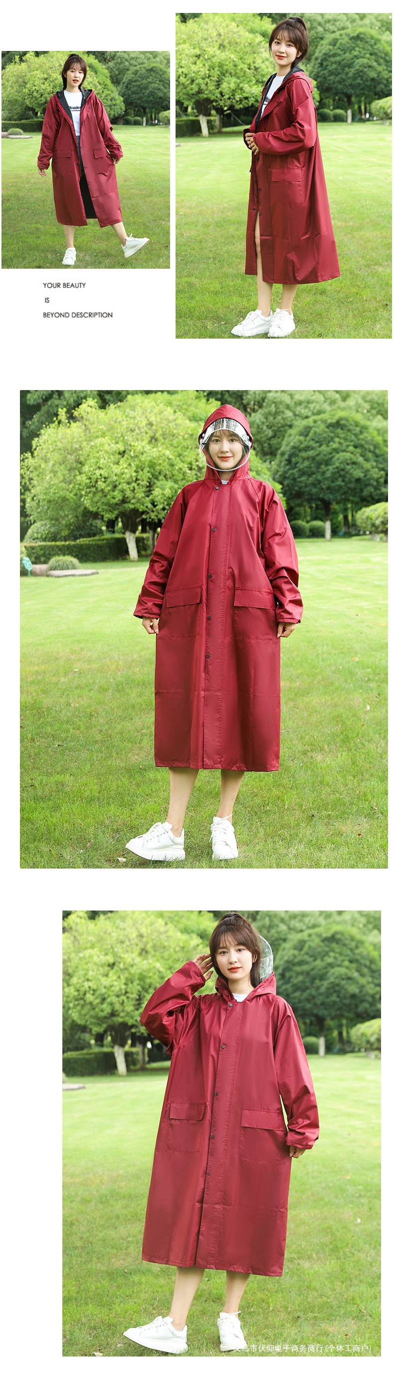 レインコートの長いタイプの男女シングルファッションの連体屋外防水防暴レインコートは学生の成人の騎乗を拡大します。