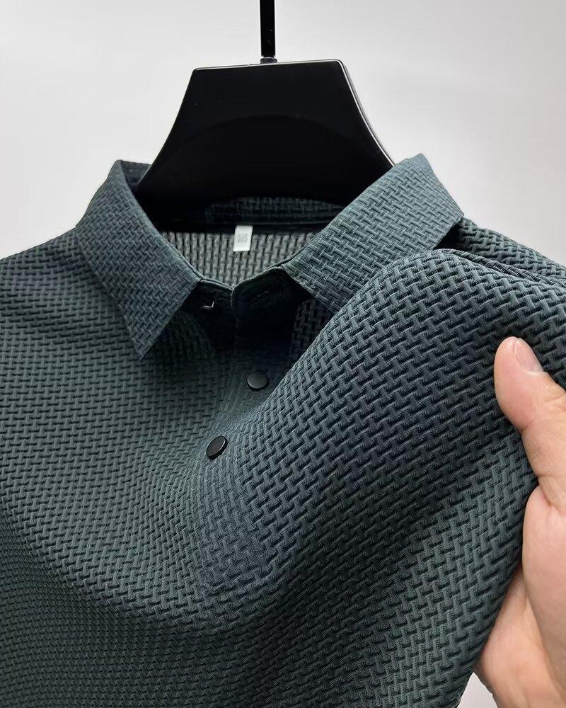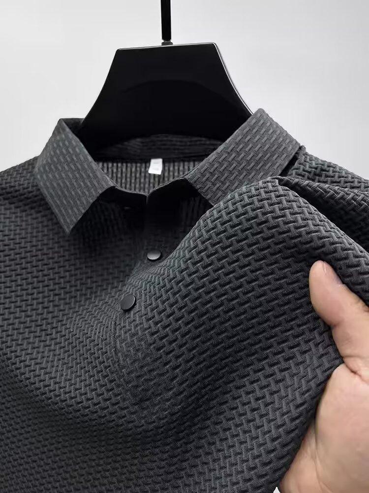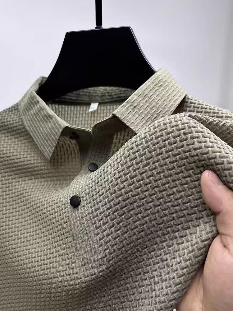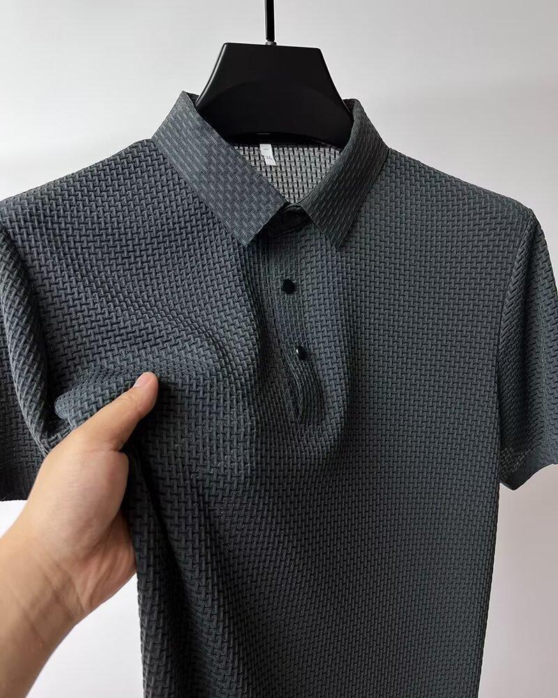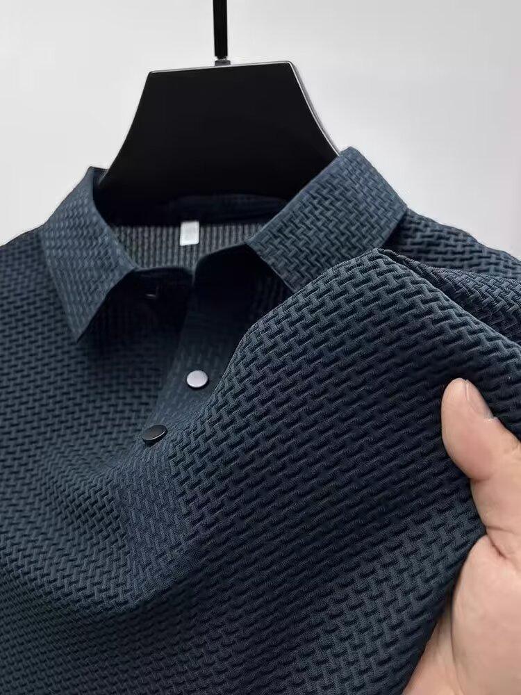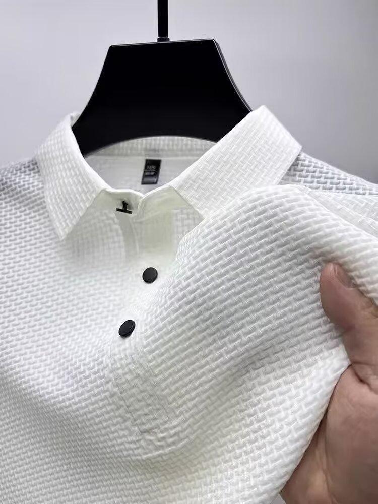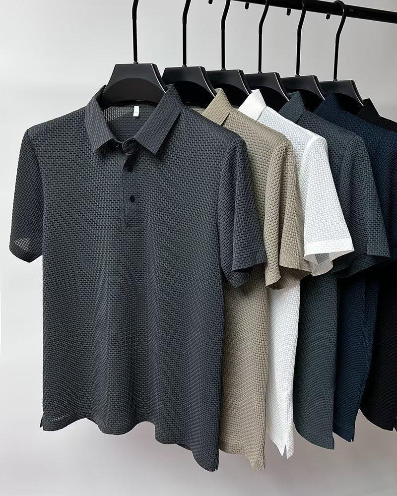 アイスシルクポロシャツ半袖シャツメンズ夏ラペルカジュアルTシャツ通気性アイス感半袖シャツシンプルトップトレンディ