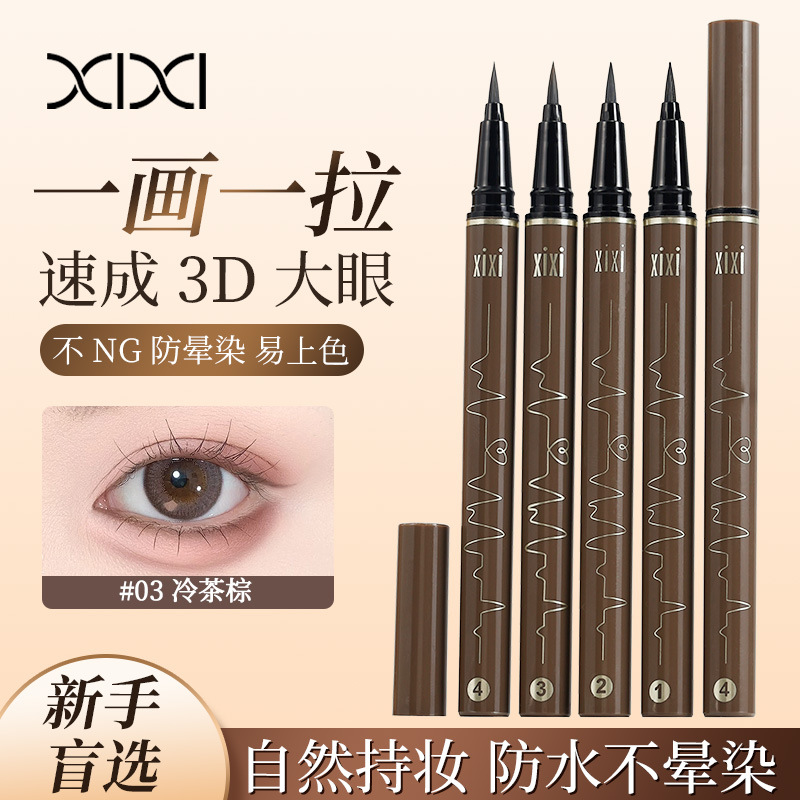 Xixi繊细描画アイライナーきめ细かい绵头防水ぼかしません初心者ブラウン臥蚕ペンアイライナー