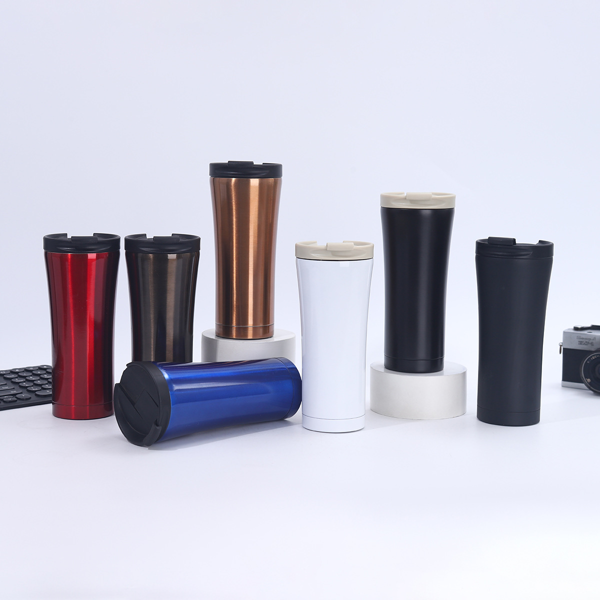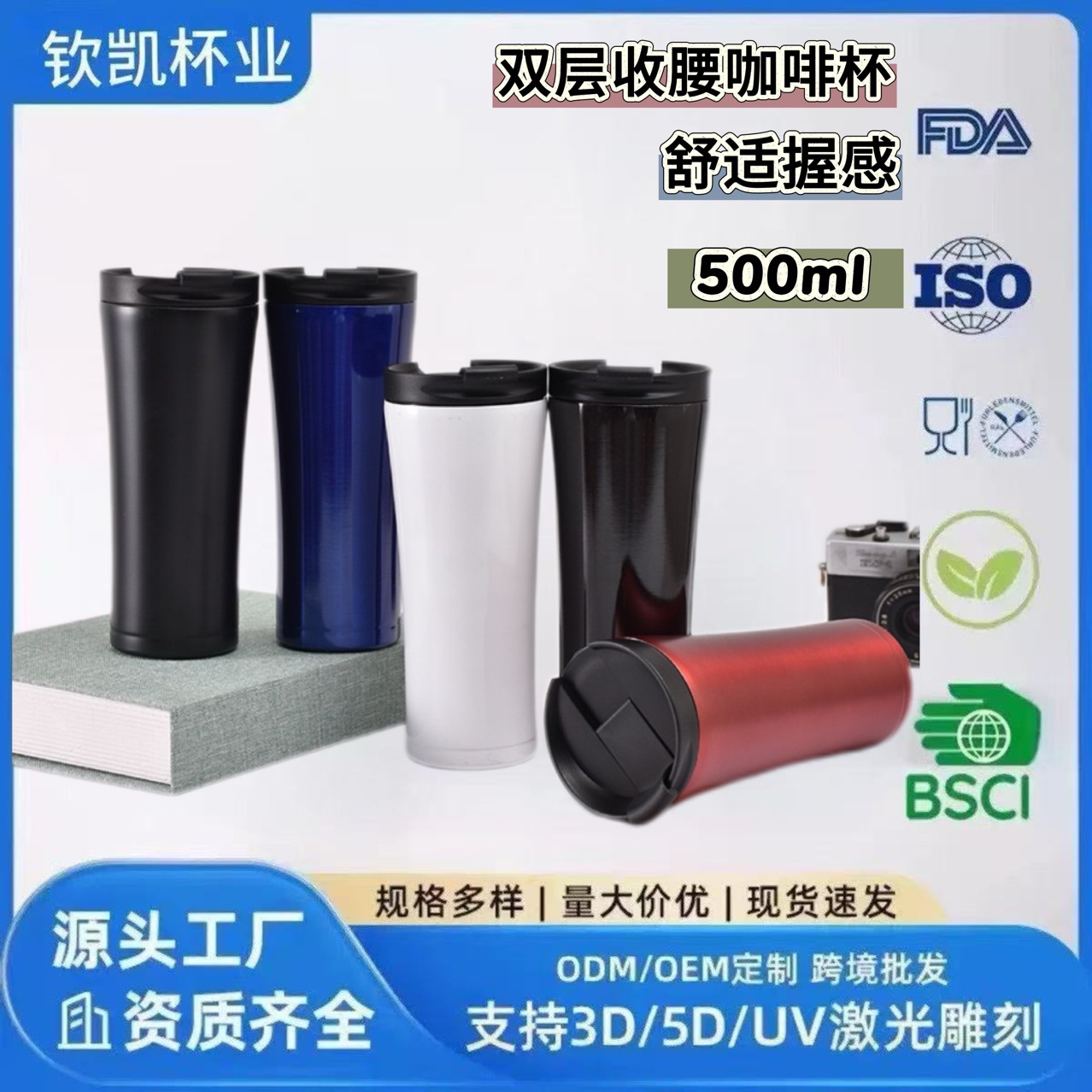 原厂双层304不锈钢直饮咖啡杯车载翻盖便携真空保温杯双层咖啡杯