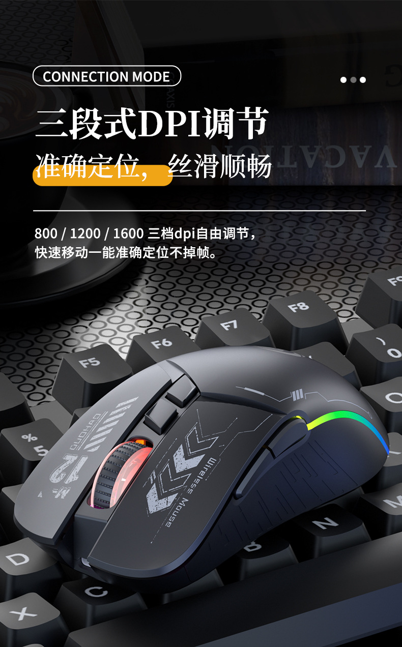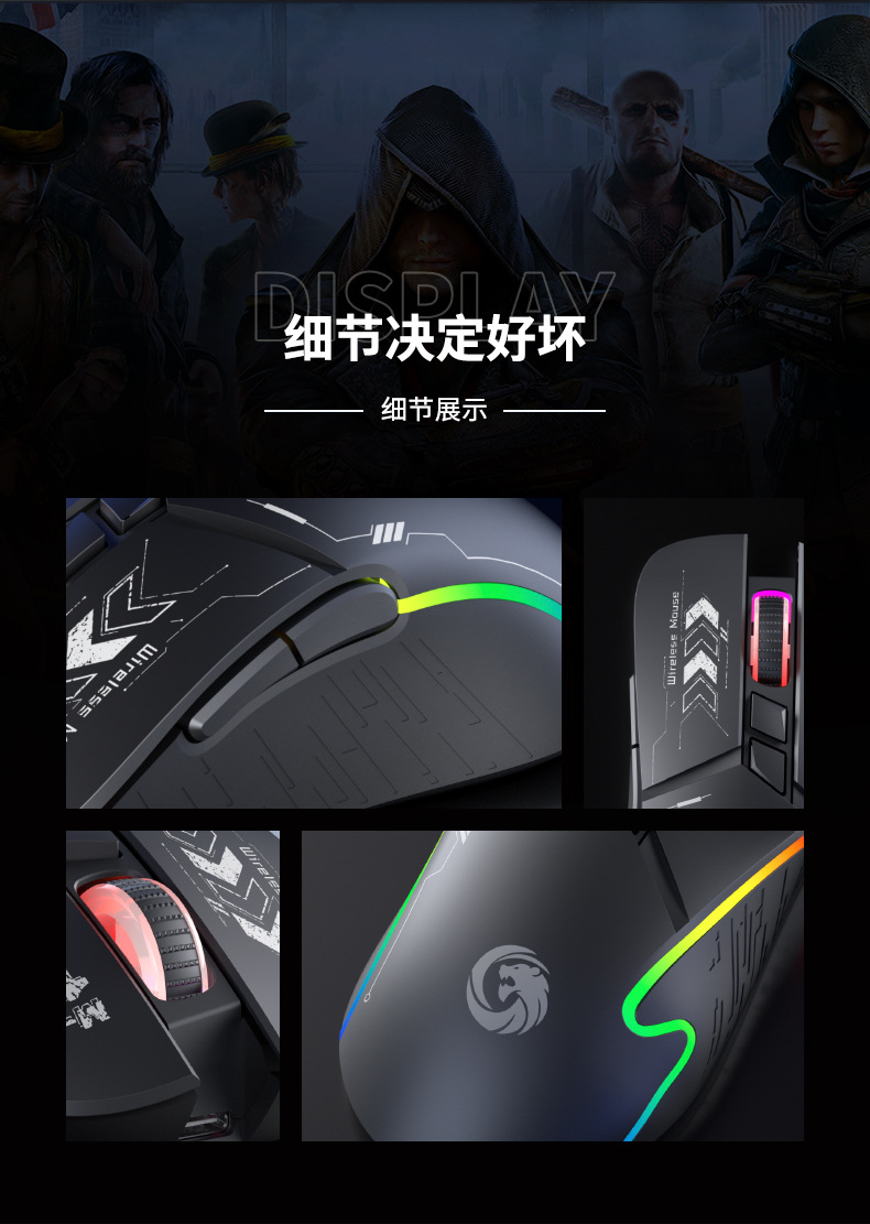 クロスボーダー爆金2.4G無線ゲームマウス電気競争機甲風RGBグレース静音充電可能コンピュータ共通