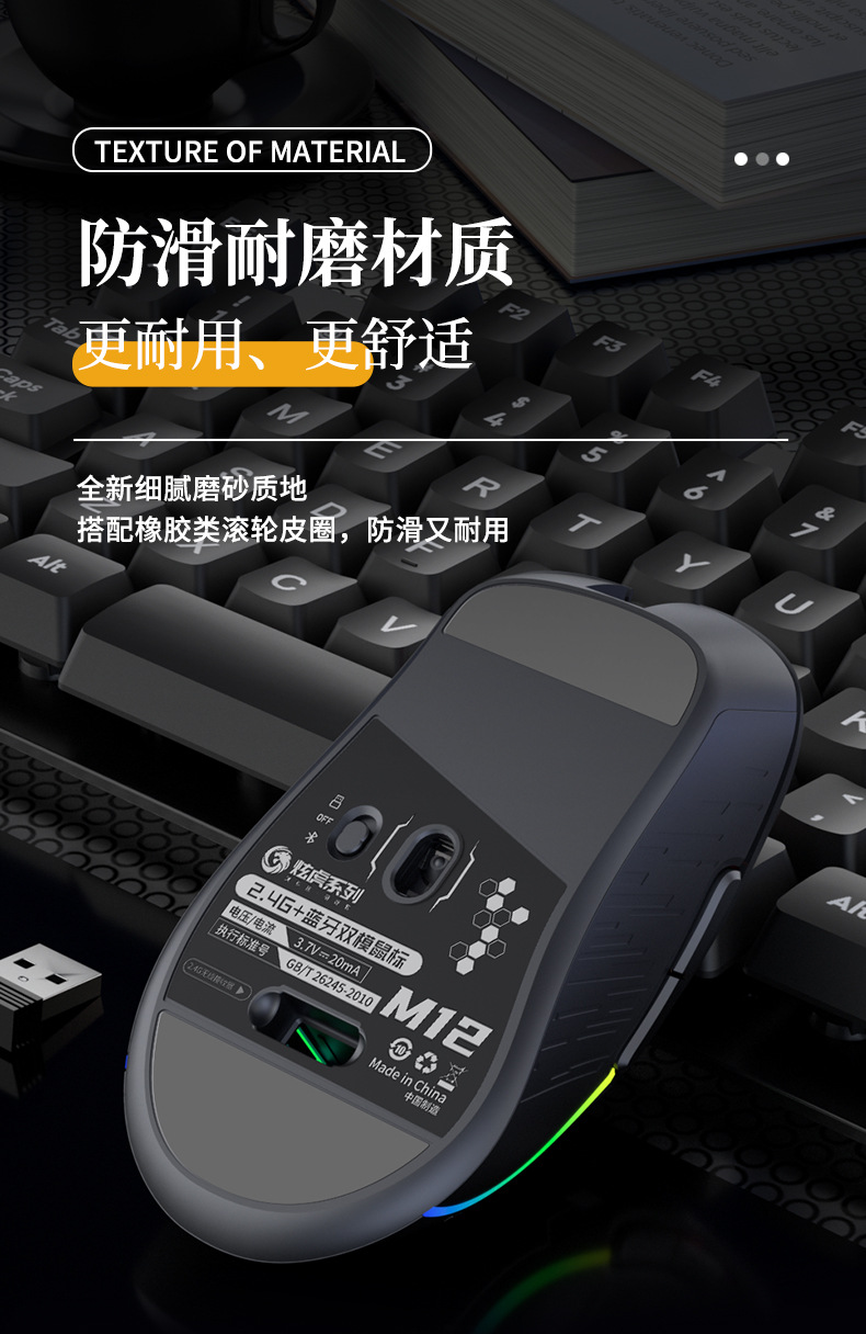 クロスボーダー起爆ワイヤレスマウスbluetoothデュアルモードtype-c充電静音オフィスノートパソコン共通