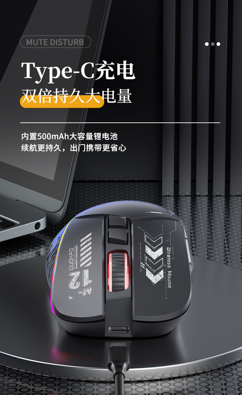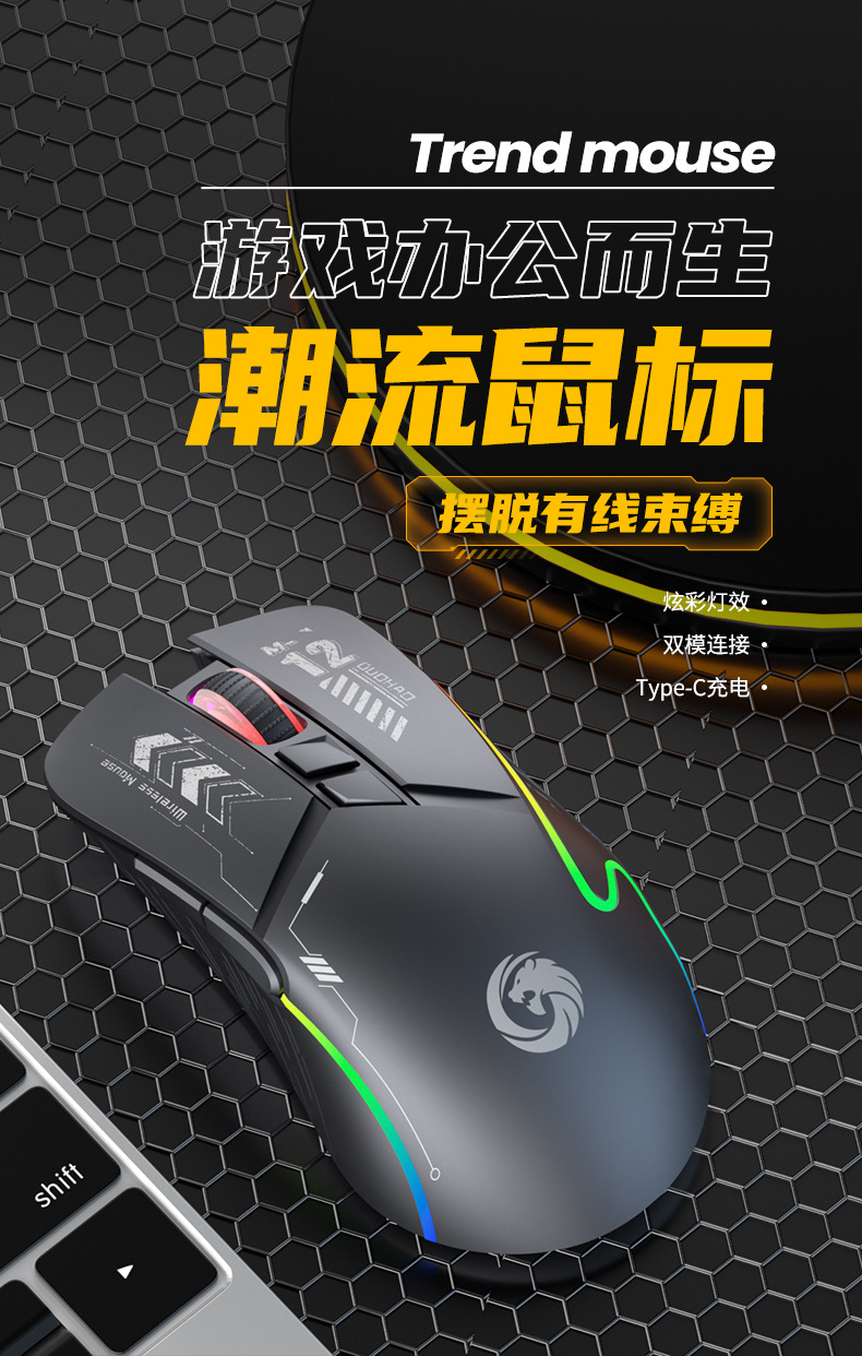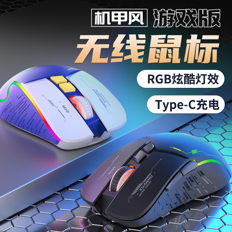 機甲風無線ゲームマウス電気競争発光bluetoothダブルモードtype-c充電静音コンピュータ汎用プライベートモード