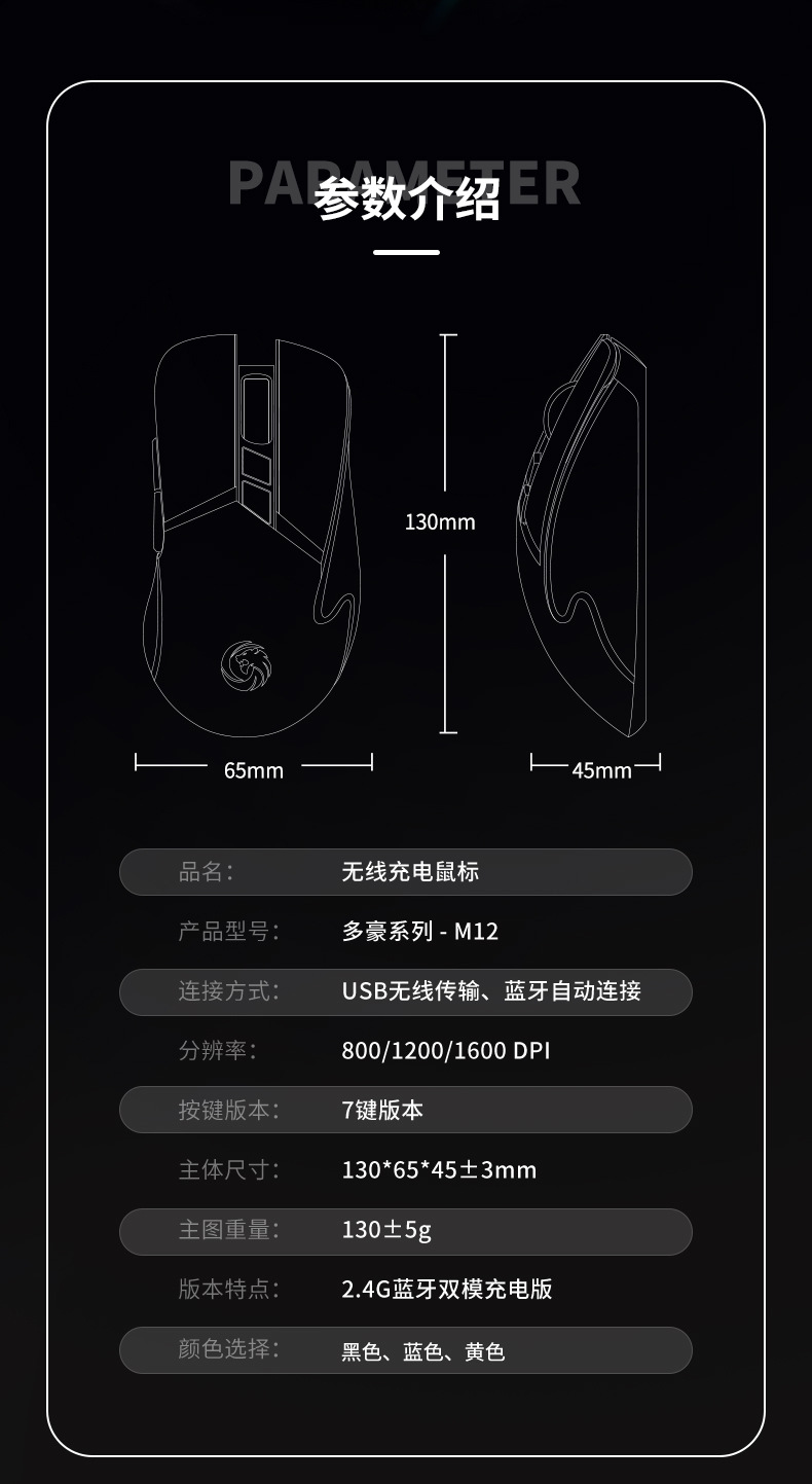 アマゾンの起爆金M33機甲2.4G無線ゲームマウスのグレア光静音電気競争充電可能bluetoothデュアルモード