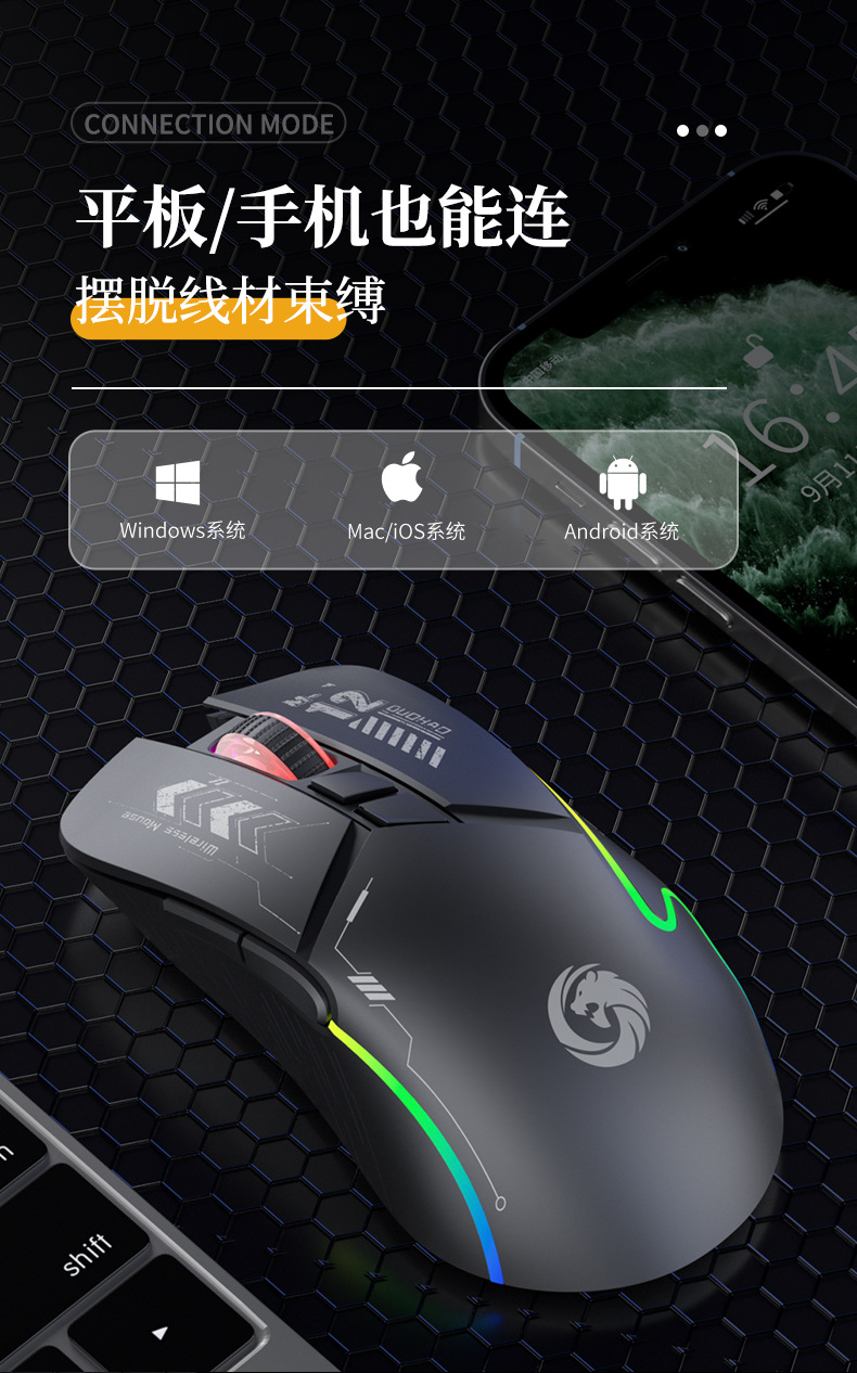 機甲風ゲームマウス無線bluetoothデュアルコンピュータ充電可能静音オフィスが輝いている