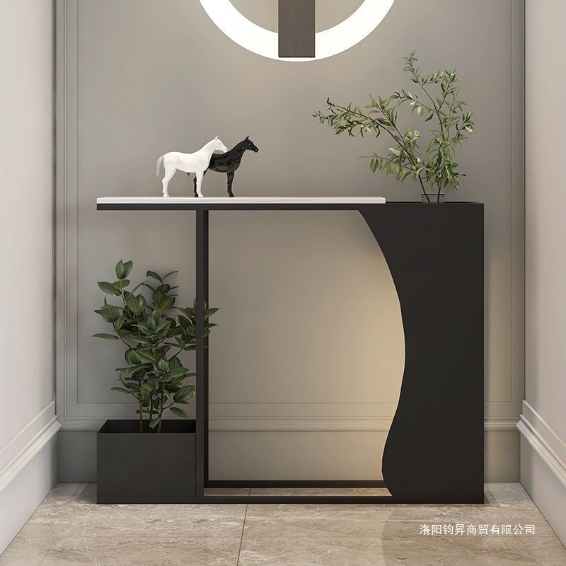 现代玄关桌铁艺轻奢极窄门厅走廊创意岩板石入户高端花架玄关台柜