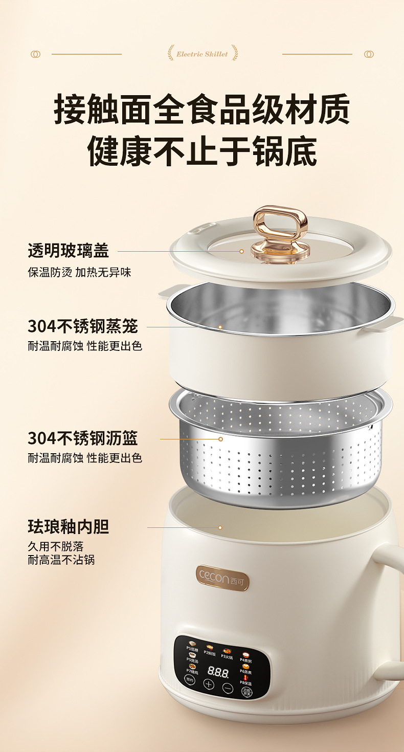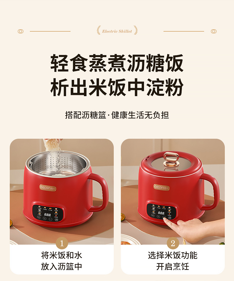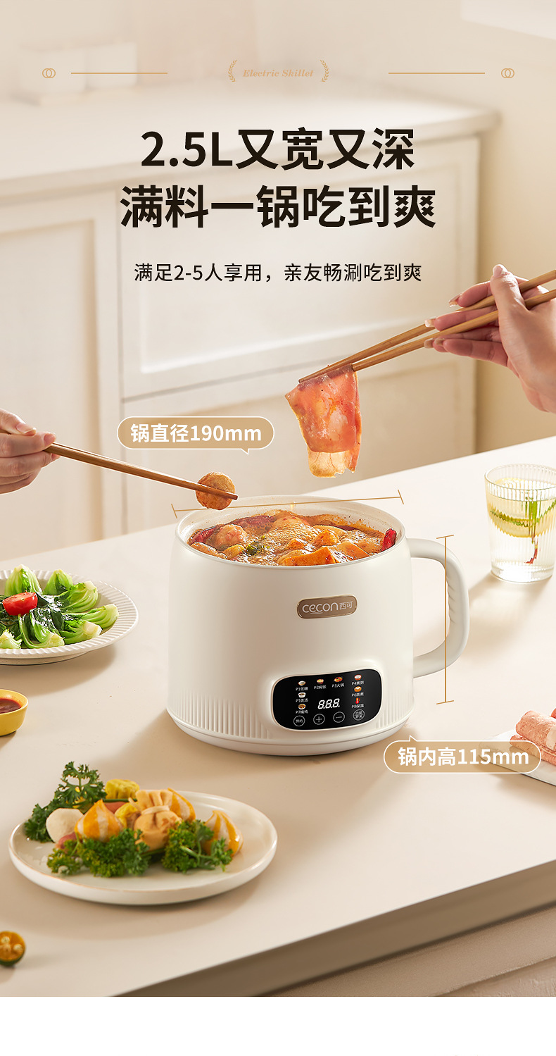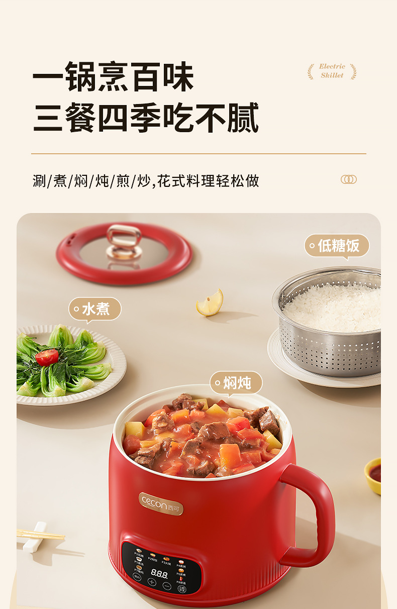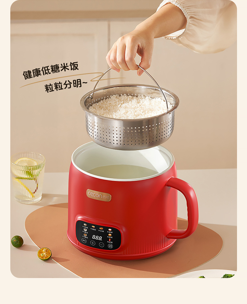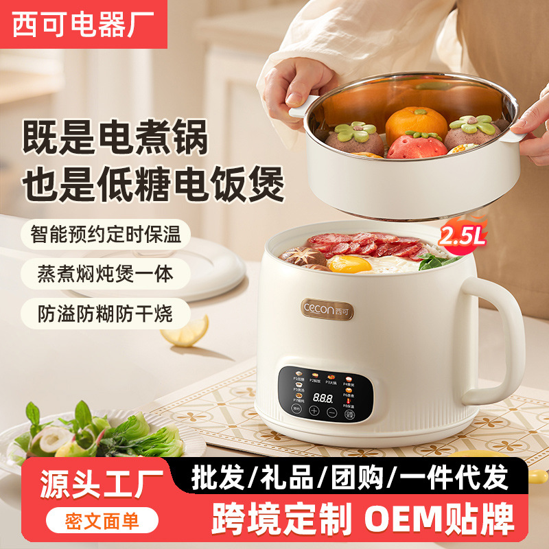西可电煮锅2升电饭煲蒸煮一体锅多功能泡面火锅宿舍用迷你小电锅