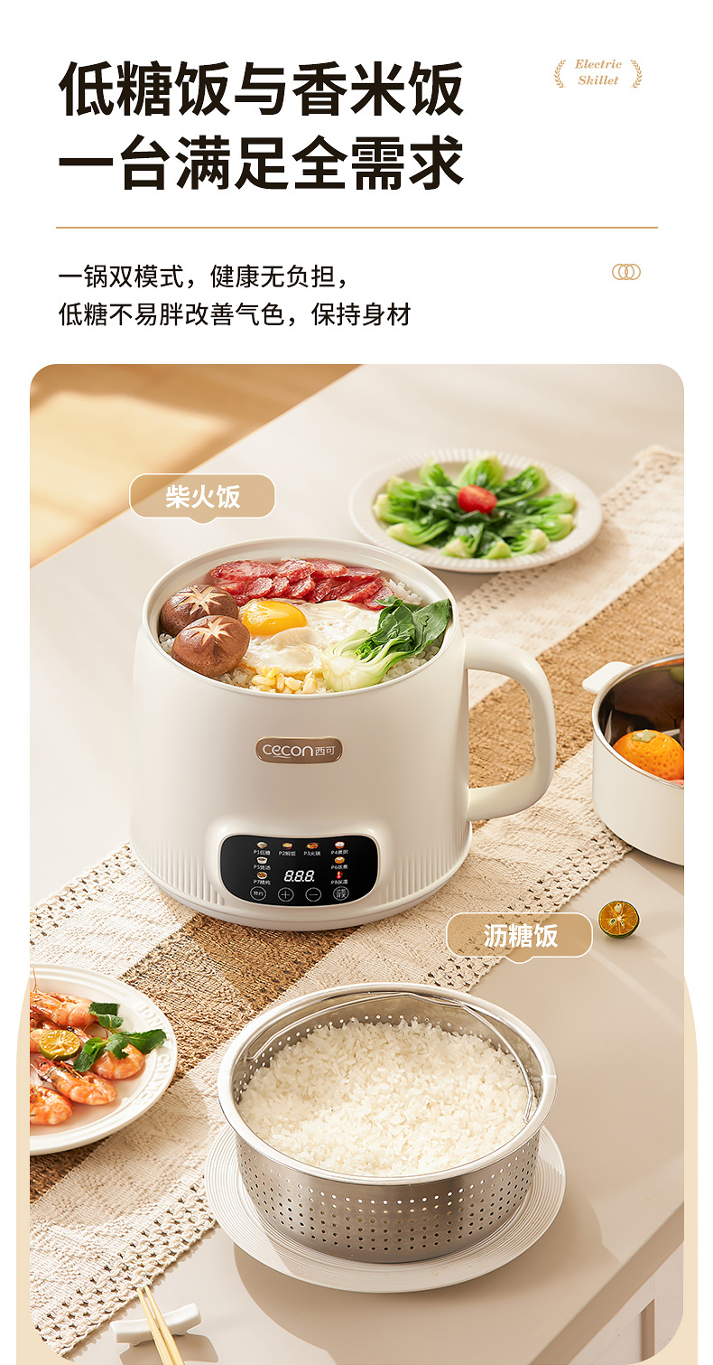 西可电煮锅一体便携锅多功能上蒸下煮网红电饭煲小型火锅小锅3人