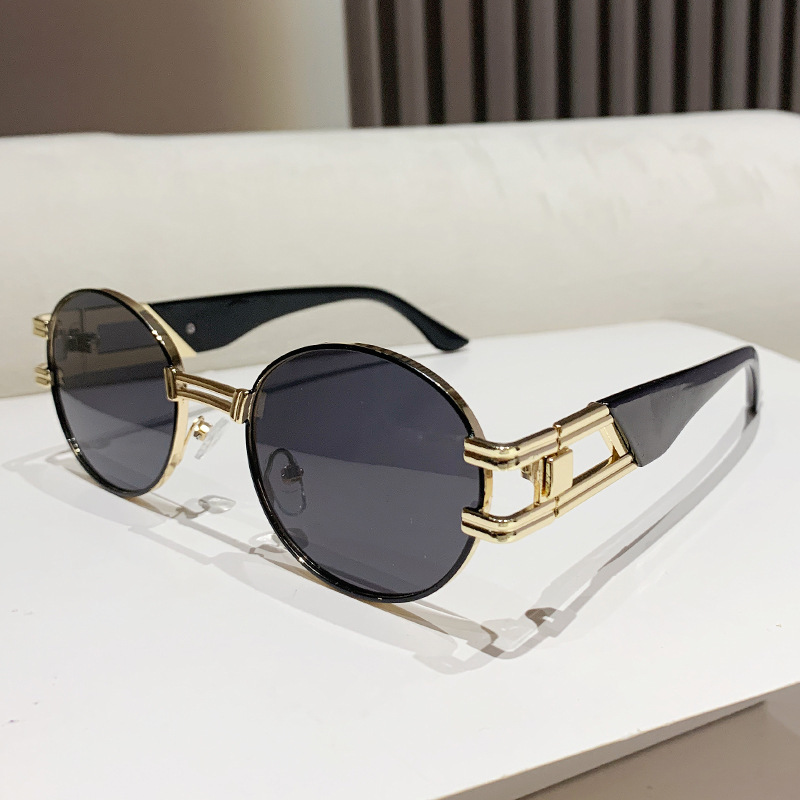 跨境Y2K欧美街拍复古太阳镜摇滚朋克风圆框太阳镜潮酷沙滩墨镜男
