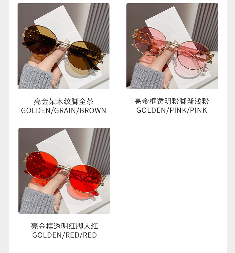 国境を越えた新型楕円サングラス欧米レトロ円形金属ファッションネット赤街拍百合サングラス女性卸売り