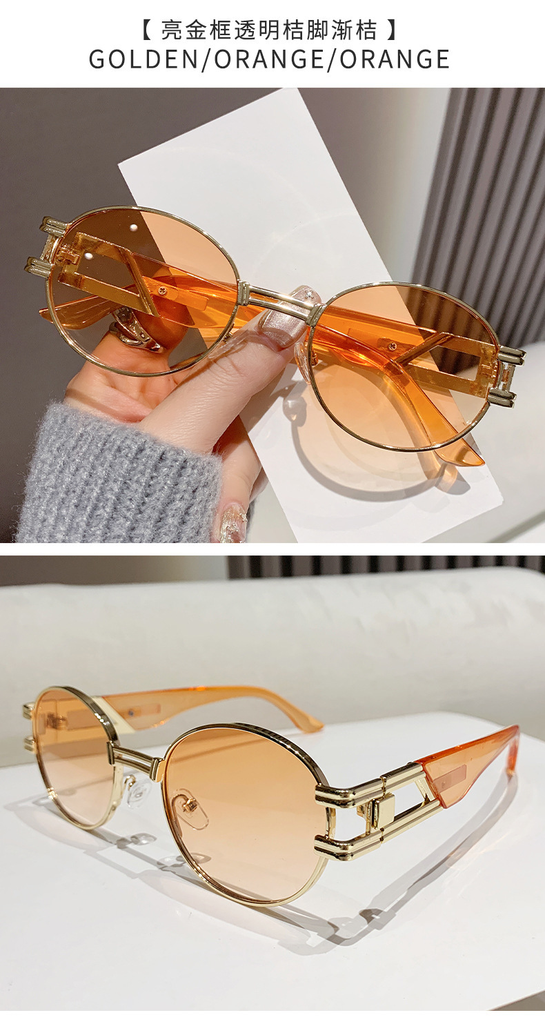 国境を越えた新型欧米レトロ楕円小枠サングラスファッション金属ファッションサングラス