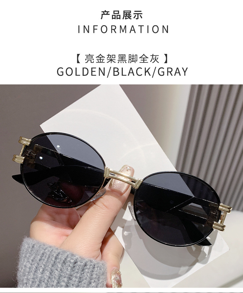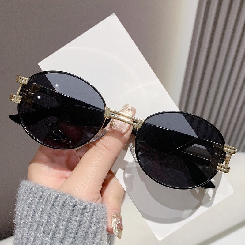 跨境新款欧美复古椭圆小框太阳镜时尚金属潮流墨镜百搭遮阳防晒镜