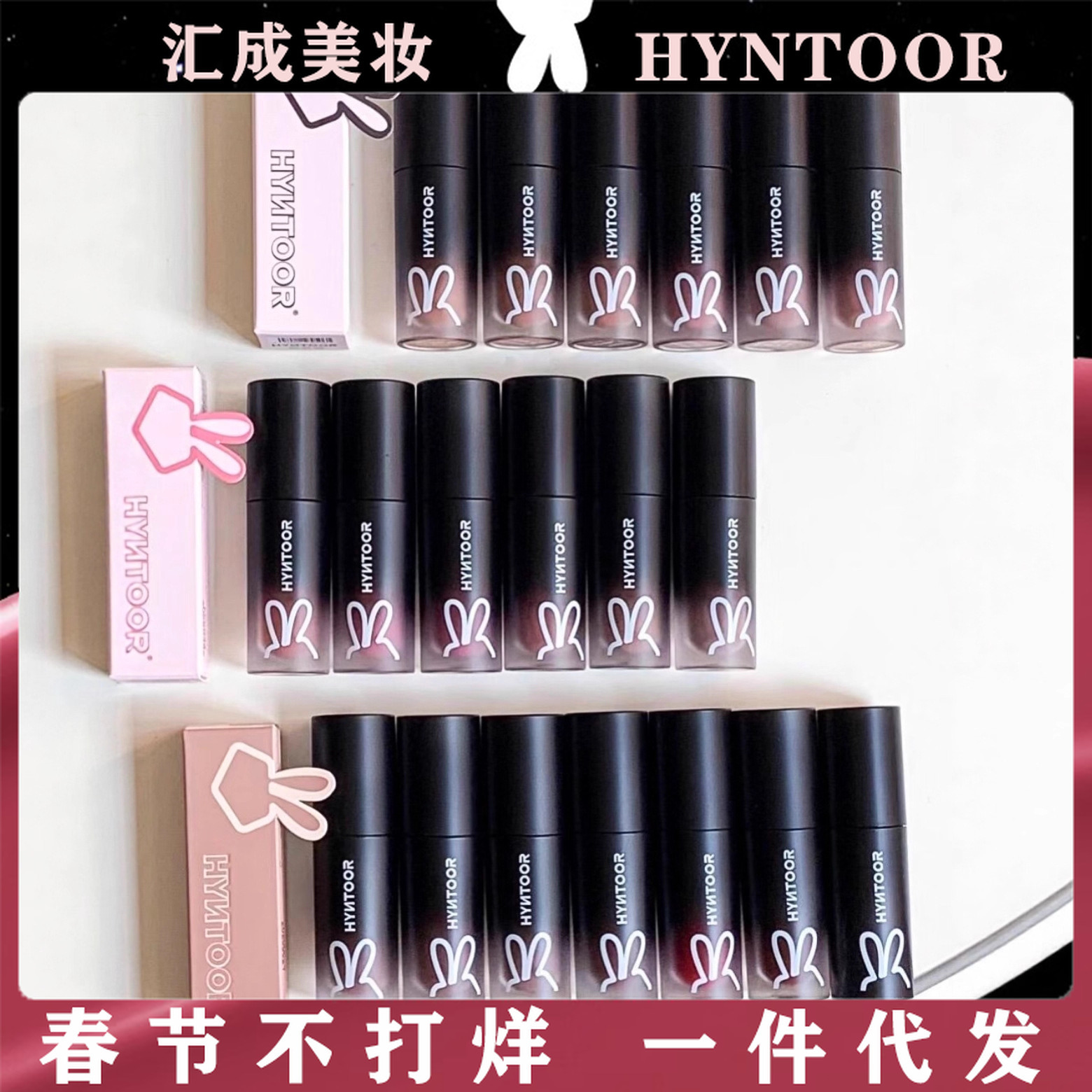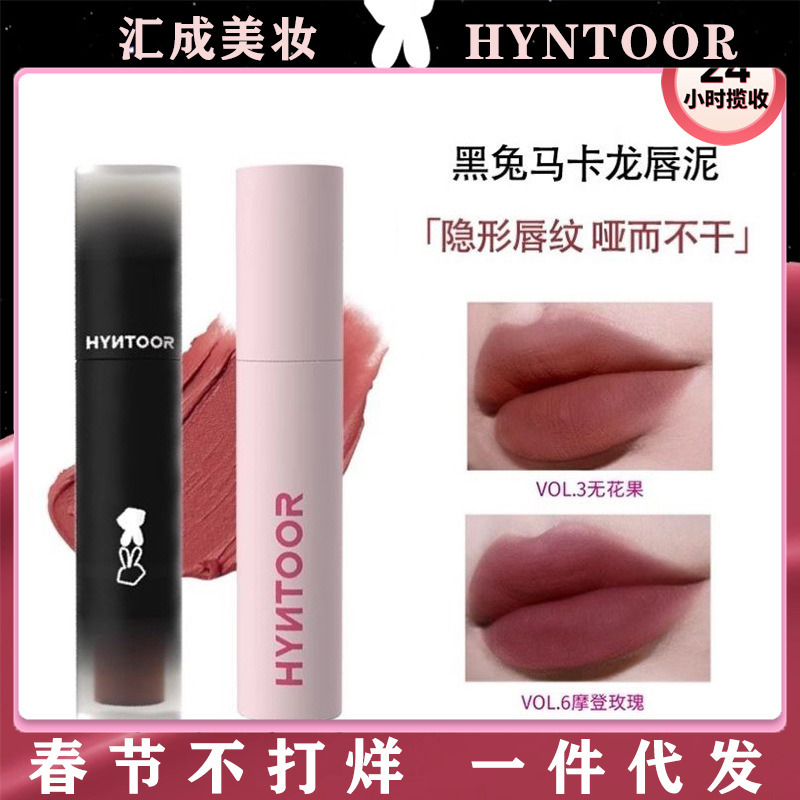 流通HYNTOOR黒兎マカロン反転唇泥マット霧面唇釉薬白秋冬裸色口紅