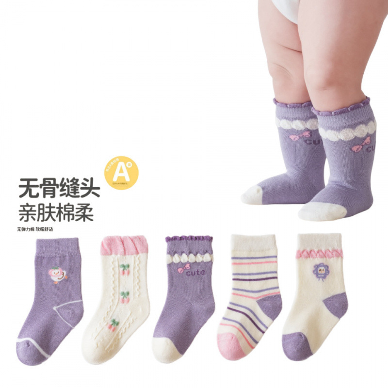 宝宝袜子25年秋季新款婴儿a类精梳棉无骨男童女童中筒袜儿童袜子