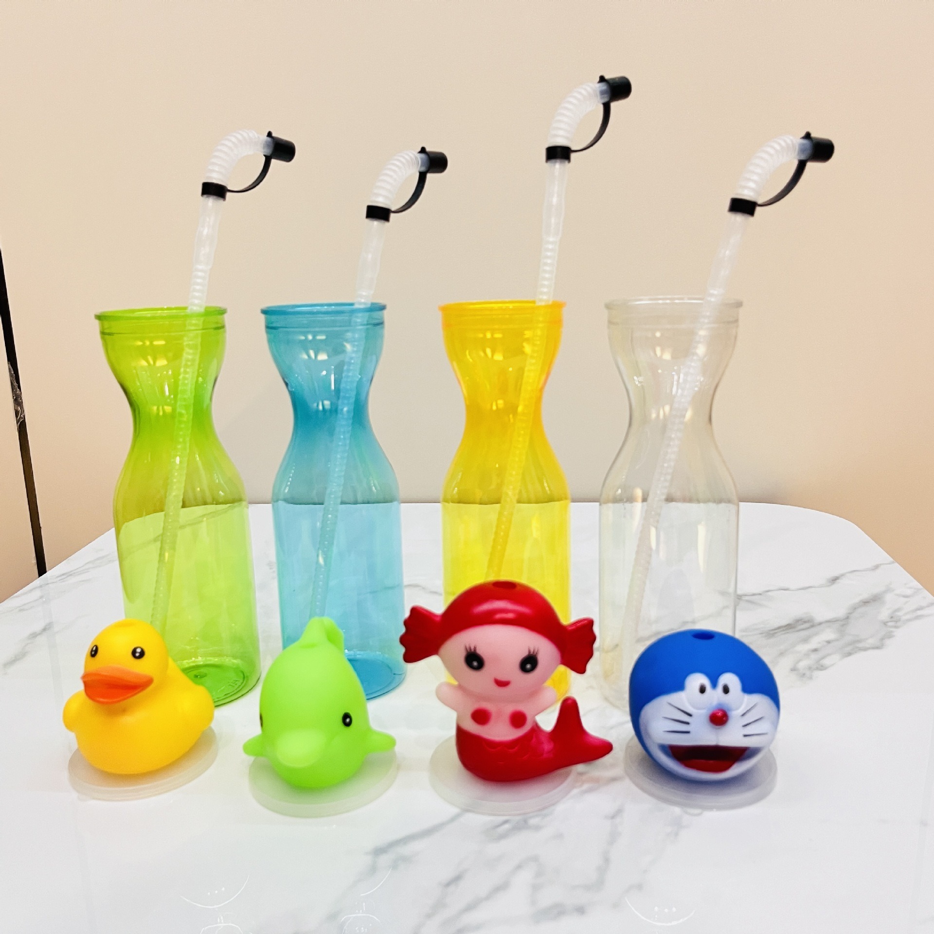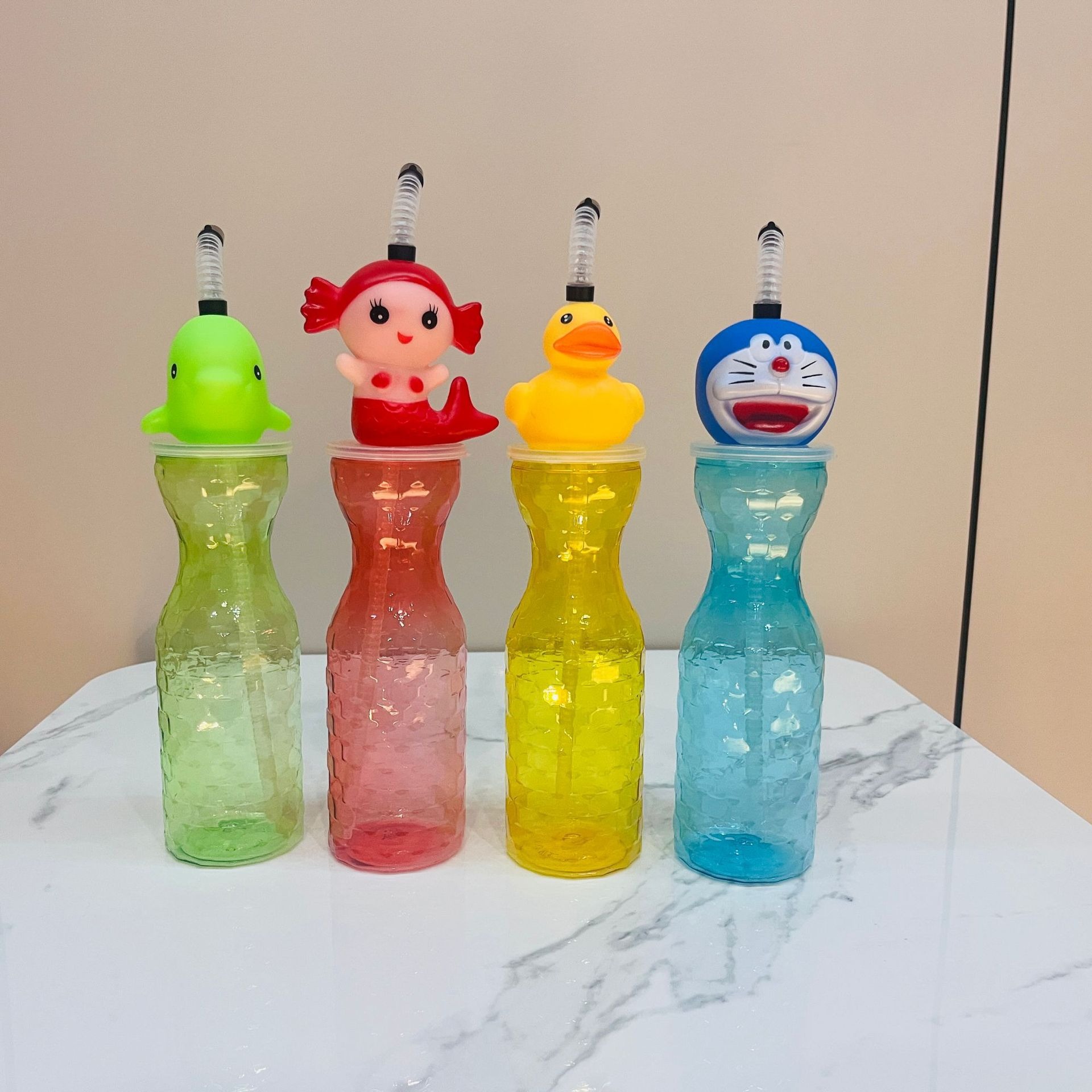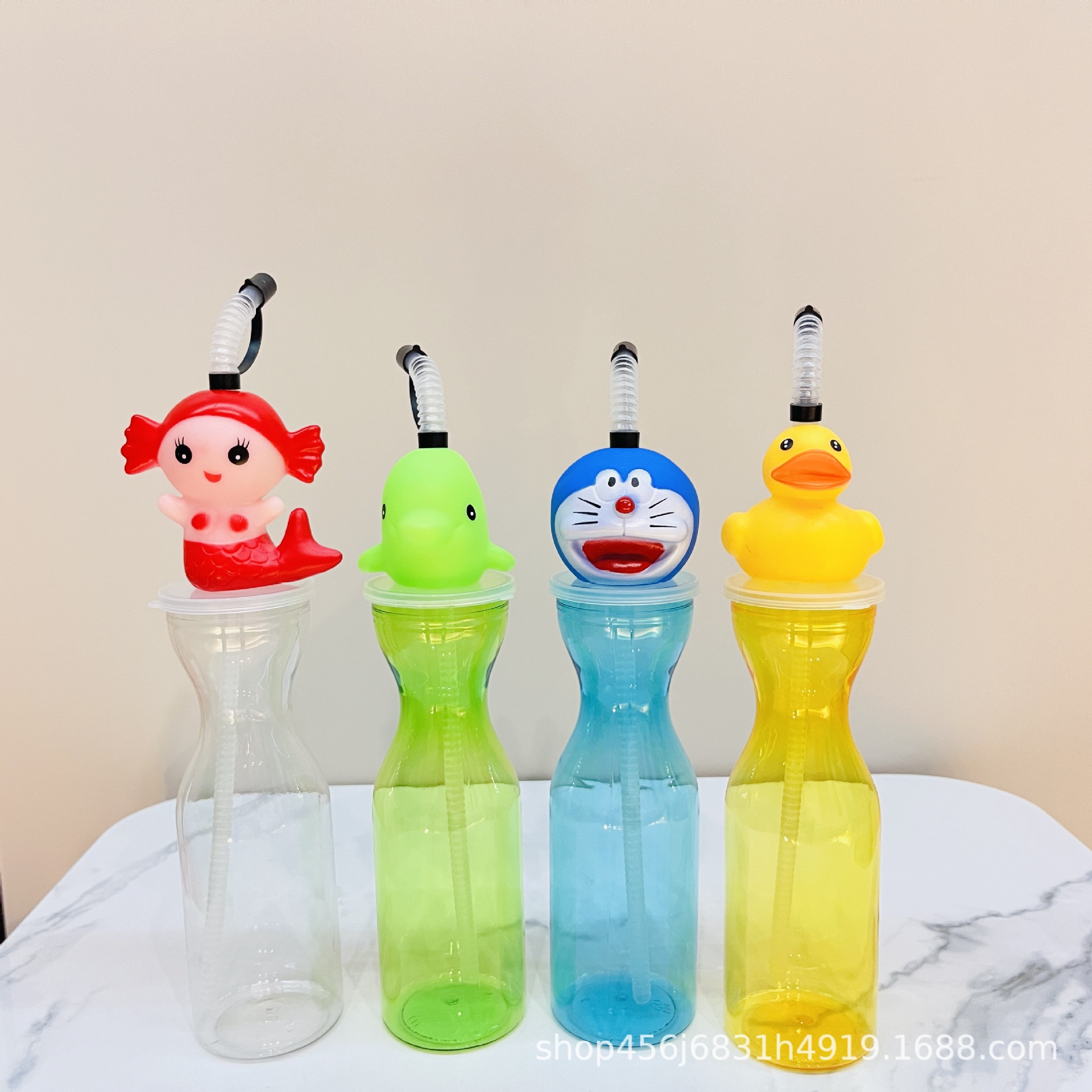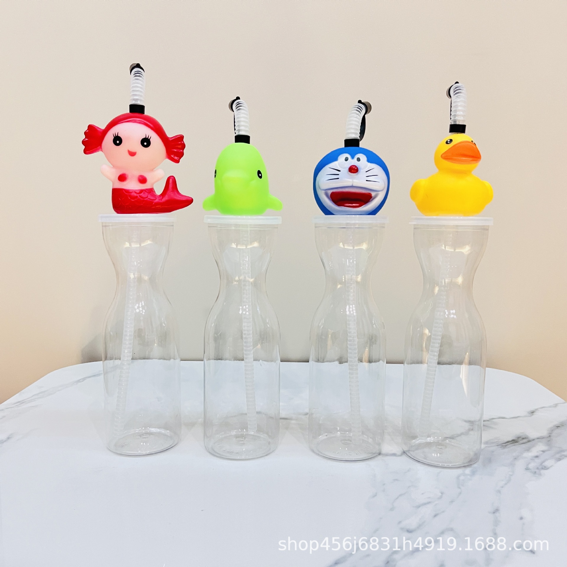 漫画動物プラスチックカップジュースミルクティー飲料ボトル景勝地フィギュアストローカップ子供用クリエイティブ同型ウォーターカップ