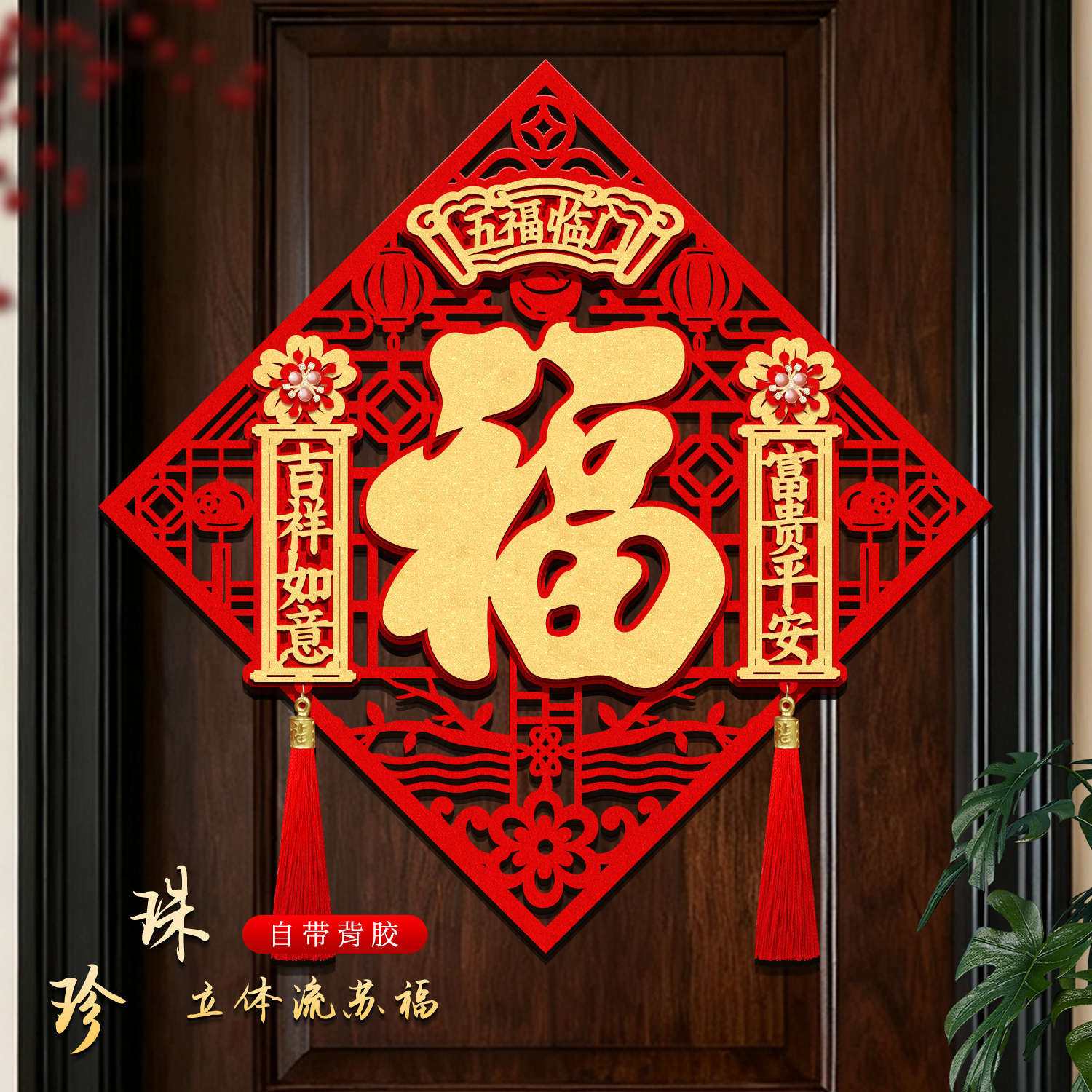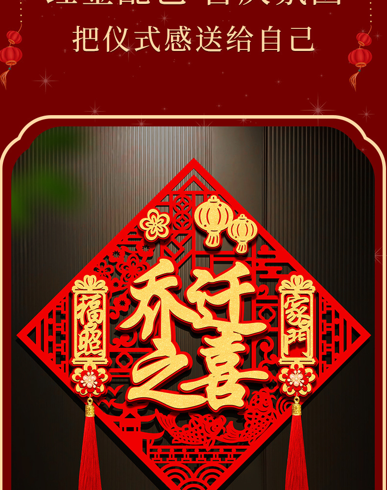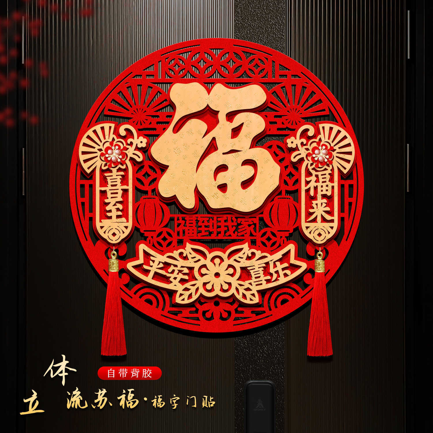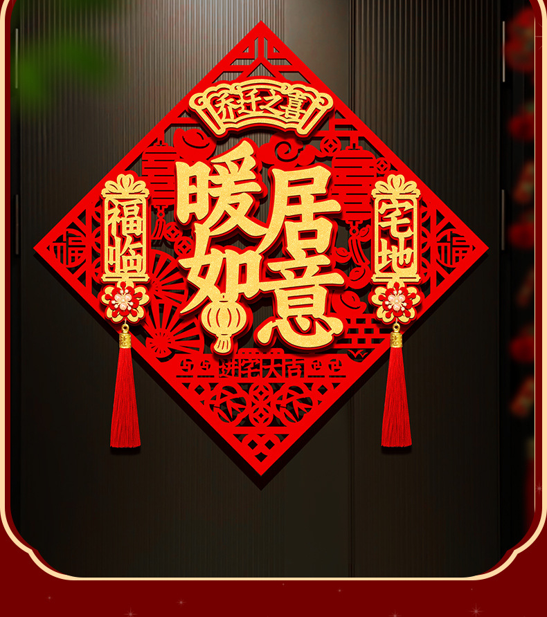 2026年福字門飾り 馬年 立体 新型 春節 正月 新年 大門 入口 ベルベット製タッセル付き福字ステッカー