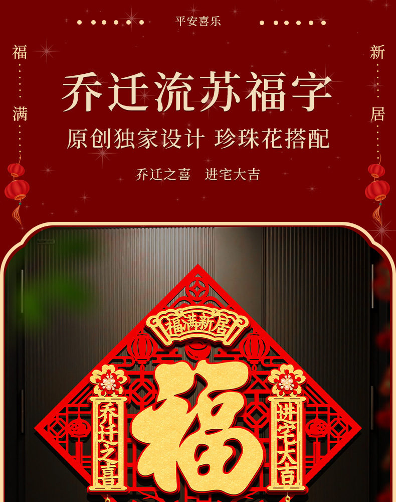 喬迁の喜は福字新居の玄関のドアを飾ります。