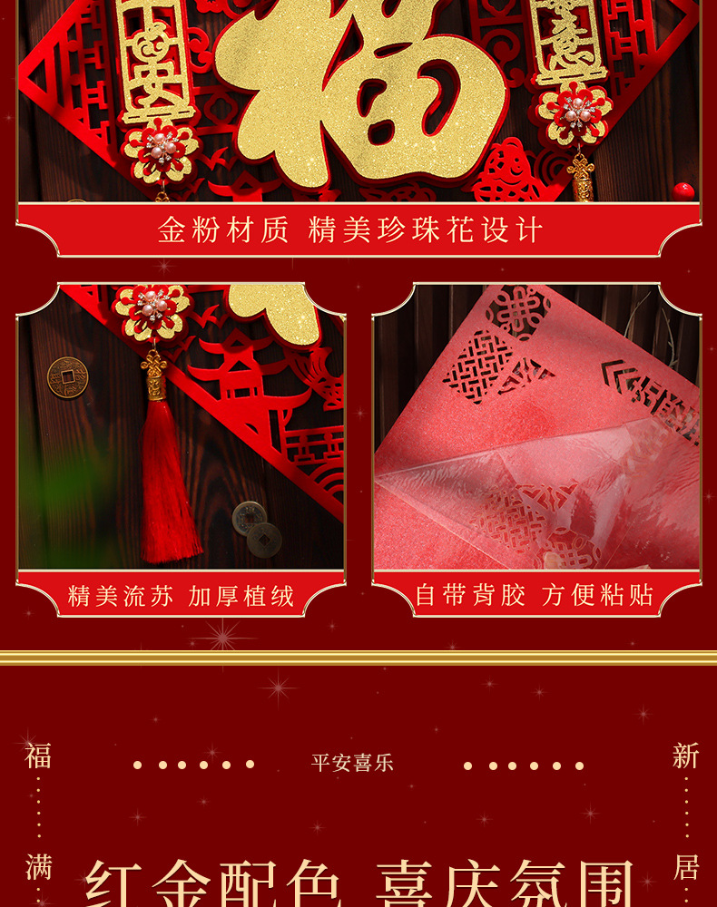 2026马年福字门贴流苏福春节立体创意装饰布置过年高档自粘绒布