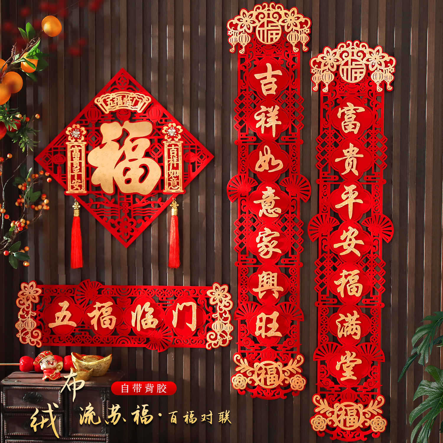 2026年新作新年対聯 馬年春節 ベルベット春聯 家庭用玄関福文字 ドアステッカー 新春飾り